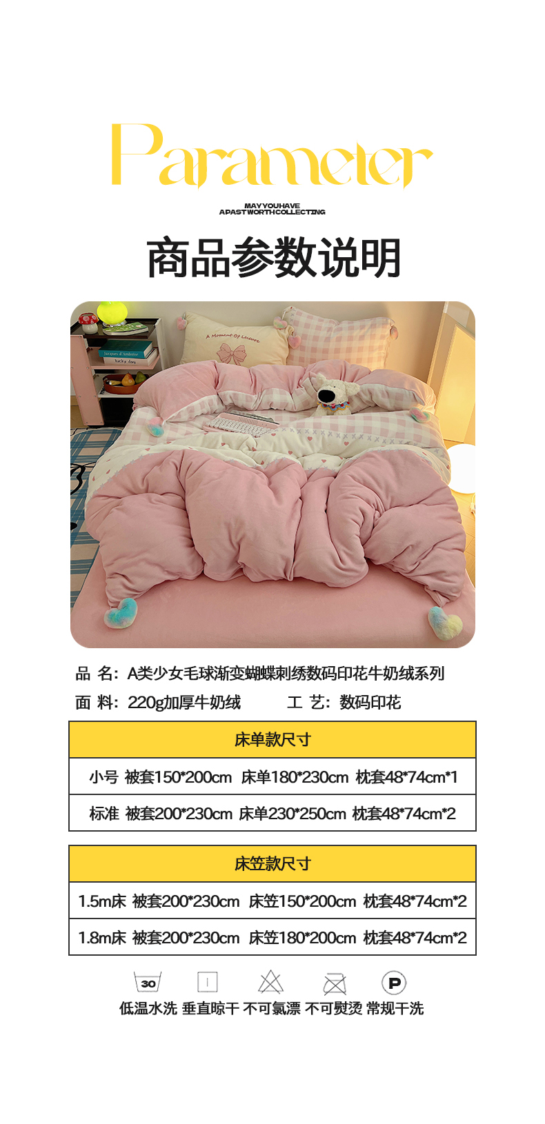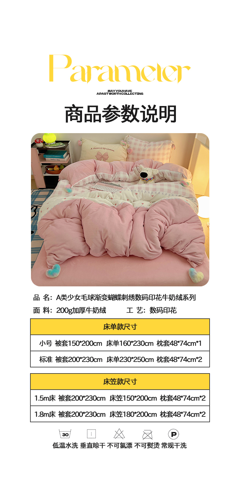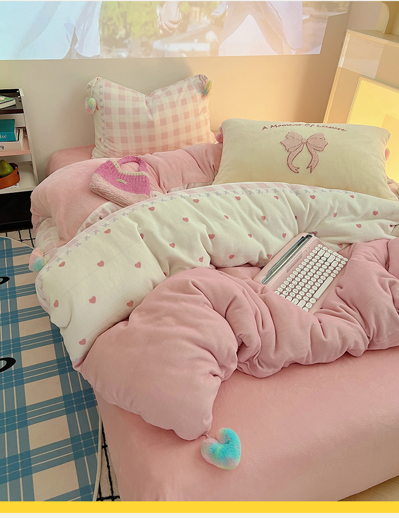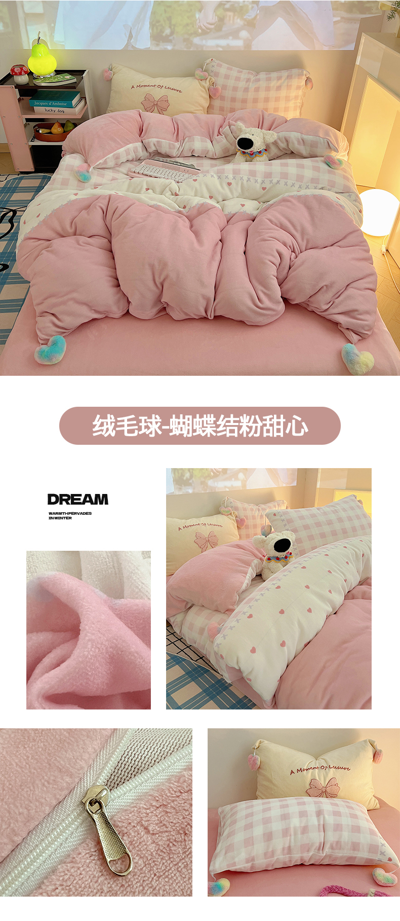 当前位置: 91家纺网 > 商品网购 > 床品套件 > 四件套 > 牛奶绒四件套 > 桃子家居 2025新款insA类少女甜心毛球混搭工艺蝴蝶结刺绣毛巾绣印花加厚牛奶绒四件套 绒毛球-蝴蝶结粉甜心