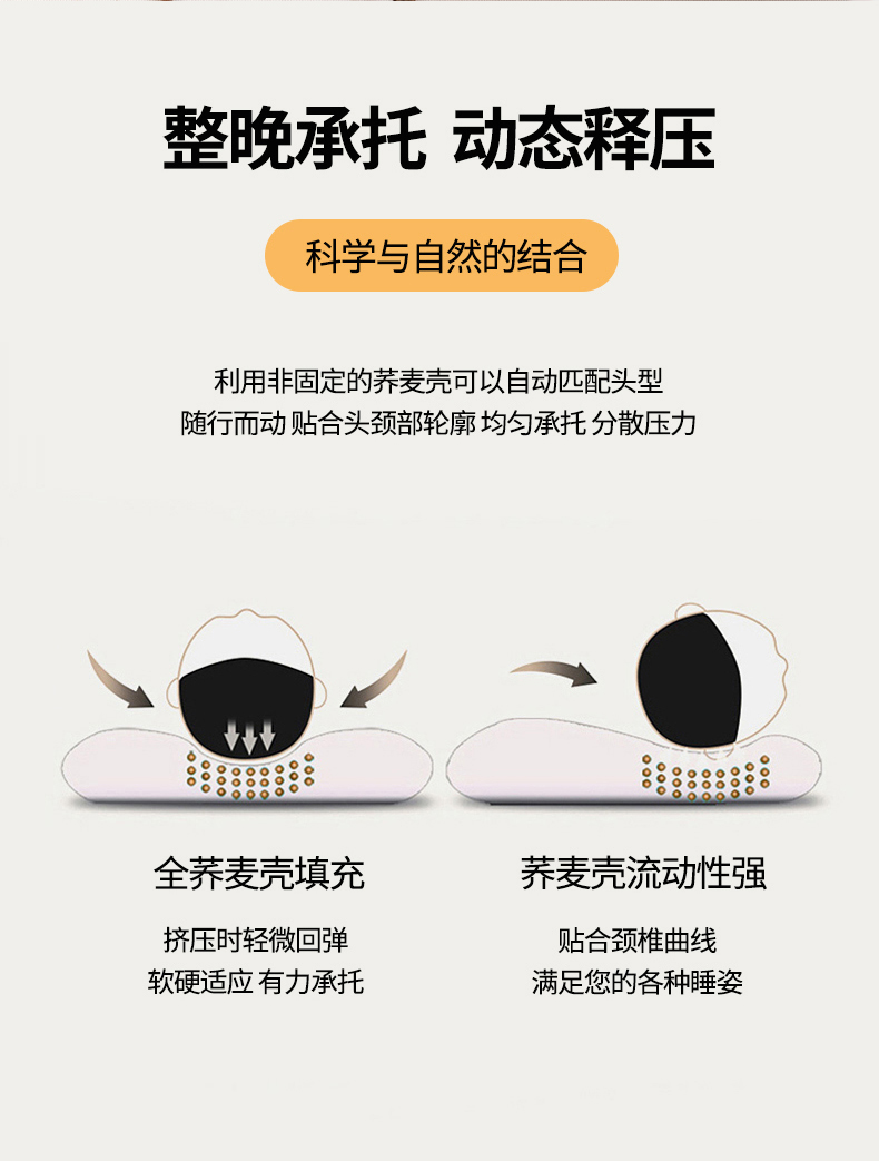 (总)大熊枕芯 2025新款棉麻刺绣款荞麦枕枕头枕芯,棉麻刺绣款荞麦枕