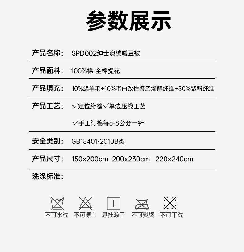 [{"sp_id":11,"sp_name":"\u989c\u8272\u5206\u7c7b","sp_format":2,"sp_list":[{"sp_value_id":1654,"sp_value_name":"\u767d\u8272","sp_value_image":{"id":999,"path":"https:\/\/img3.91jf.com\/ghelp\/2025\/20250901\/20250901100150_846848.jpg"},"sp_value_video":{"id":0,"img":"","path":"","time":0,"download_num":0,"play_num":0},"price":"109.00","storage":3000,"weight":"2.000","is_check_weight":0,"plus_price":"","sp_sort":0}]},{"sp_id":27,"sp_name":"\u5c3a\u5bf8","sp_format":1,"sp_list":[{"sp_value_id":302,"sp_value_name":"\u6625\u79cb\u88ab1.5*2.0m","sp_value_image":{"id":0,"path":""},"sp_value_video":{"id":0,"img":"","path":"","time":0,"download_num":0,"play_num":0},"price":"109.00","storage":500,"weight":"2.000","is_check_weight":0,"plus_price":"","sp_sort":5},{"sp_value_id":303,"sp_value_name":"\u6625\u79cb\u88ab2.0*2.3m","sp_value_image":{"id":0,"path":""},"sp_value_video":{"id":0,"img":"","path":"","time":0,"download_num":0,"play_num":0},"price":"129.00","storage":500,"weight":"2.000","is_check_weight":0,"plus_price":"","sp_sort":6},{"sp_value_id":304,"sp_value_name":"\u6625\u79cb\u88ab2.2*2.4m","sp_value_image":{"id":0,"path":""},"sp_value_video":{"id":0,"img":"","path":"","time":0,"download_num":0,"play_num":0},"price":"149.00","storage":500,"weight":"2.500","is_check_weight":0,"plus_price":"","sp_sort":7},{"sp_value_id":305,"sp_value_name":"\u51ac\u88ab1.5*2.0m","sp_value_image":{"id":0,"path":""},"sp_value_video":{"id":0,"img":"","path":"","time":0,"download_num":0,"play_num":0},"price":"139.00","storage":500,"weight":"2.000","is_check_weight":0,"plus_price":"","sp_sort":8},{"sp_value_id":306,"sp_value_name":"\u51ac\u88ab2.0*2.3m","sp_value_image":{"id":0,"path":""},"sp_value_video":{"id":0,"img":"","path":"","time":0,"download_num":0,"play_num":0},"price":"159.00","storage":500,"weight":"3.000","is_check_weight":0,"plus_price":"","sp_sort":9},{"sp_value_id":307,"sp_value_name":"\u51ac\u88ab2.2*2.4m","sp_value_image":{"id":0,"path":""},"sp_value_video":{"id":0,"img":"","path":"","time":0,"download_num":0,"play_num":0},"price":"179.00","storage":500,"weight":"3.500","is_check_weight":0,"plus_price":"","sp_sort":10}]}]
