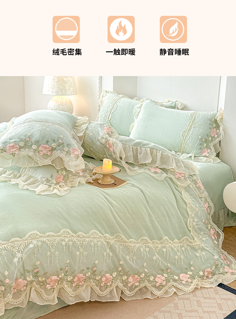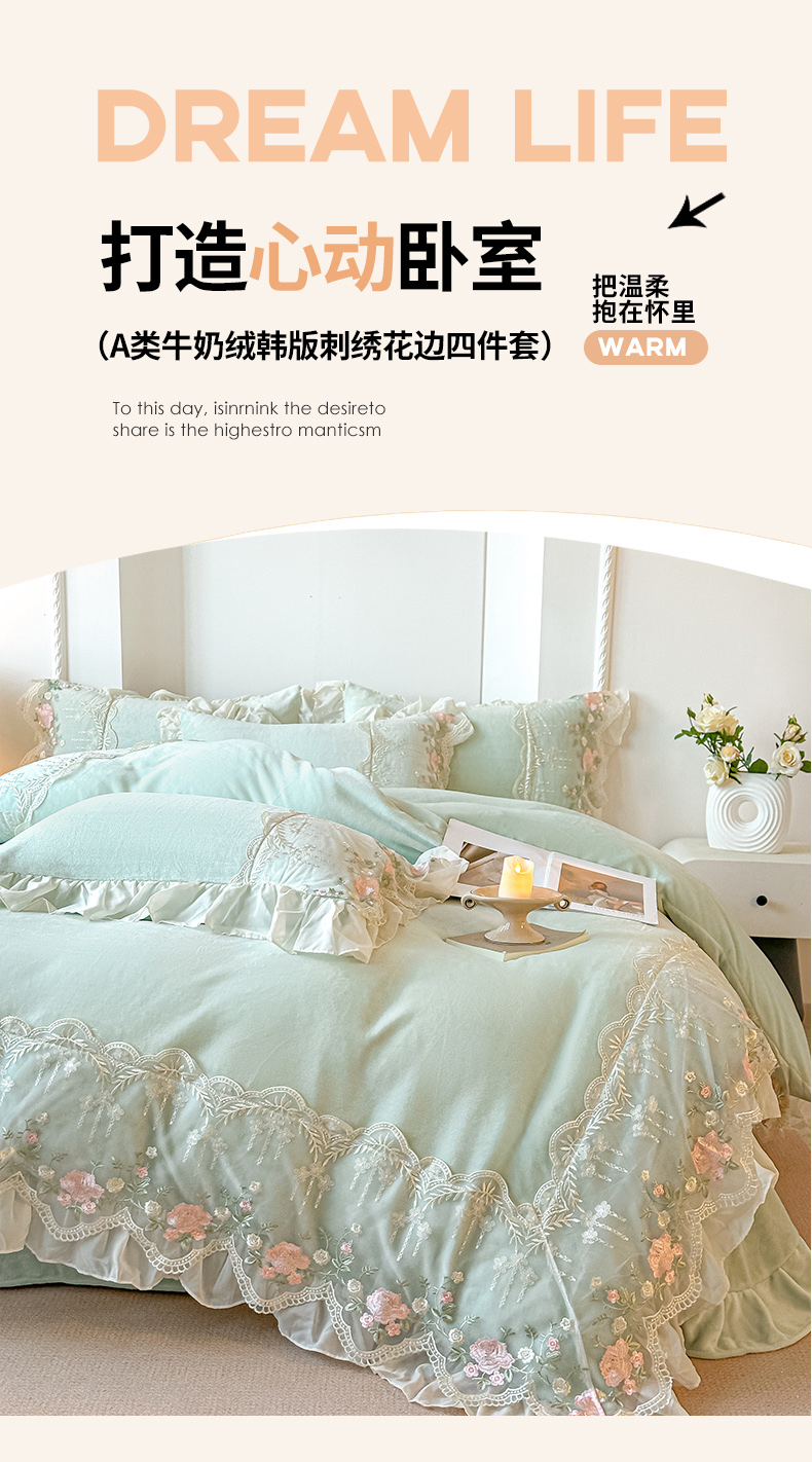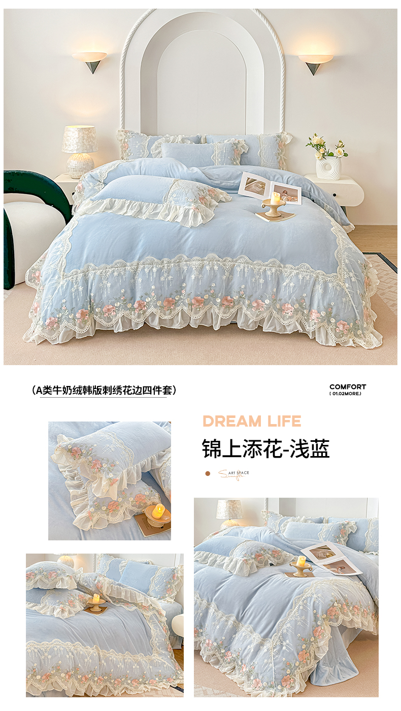 (总)凯美家居 2025新款A类牛奶绒蕾丝刺绣四件套-锦上添花