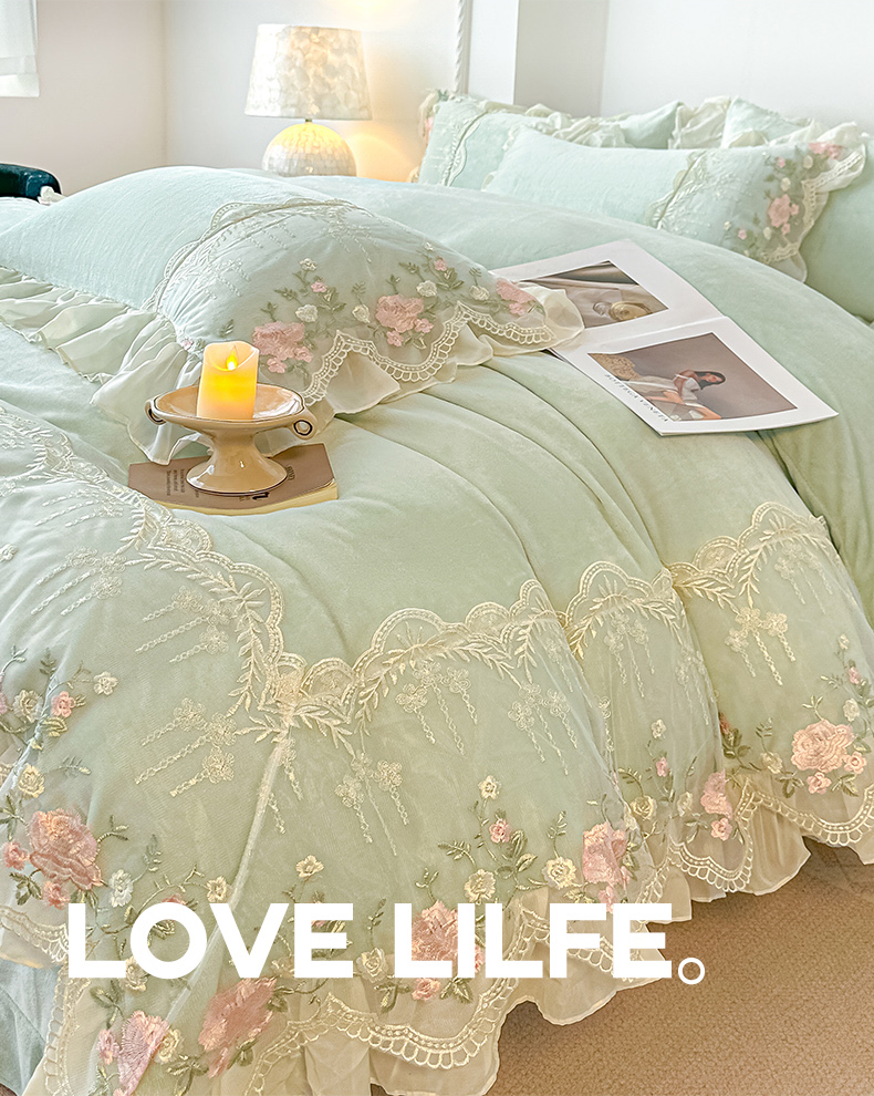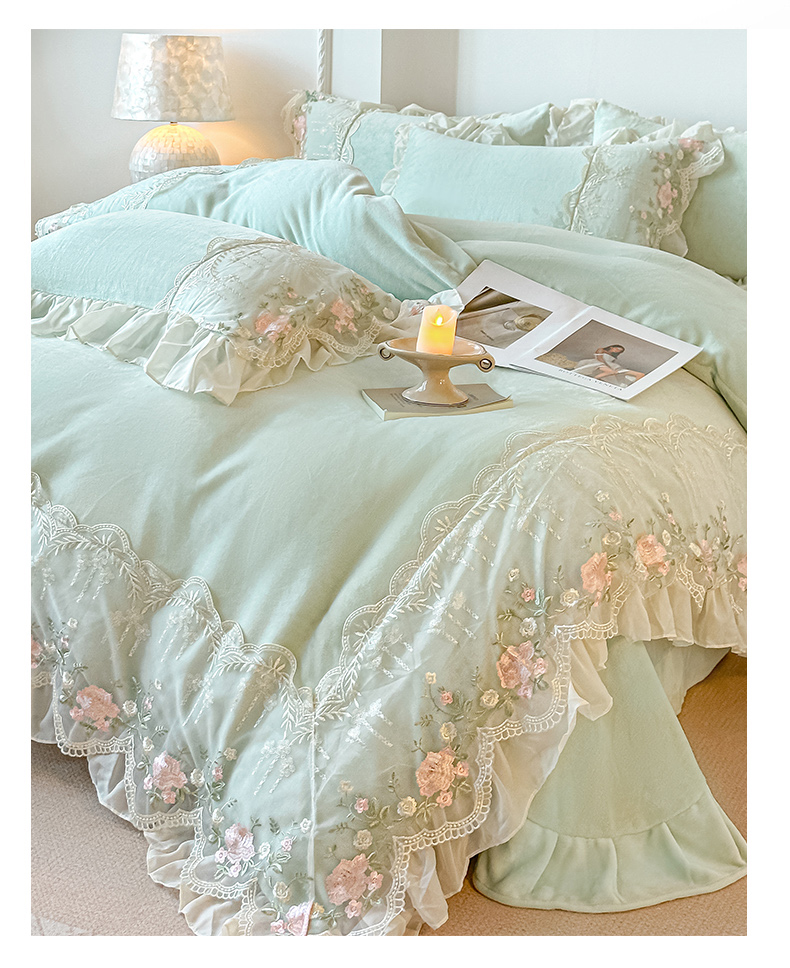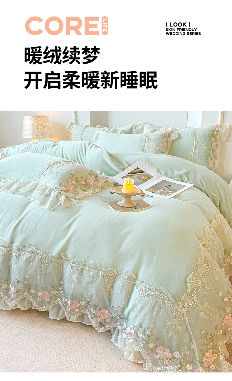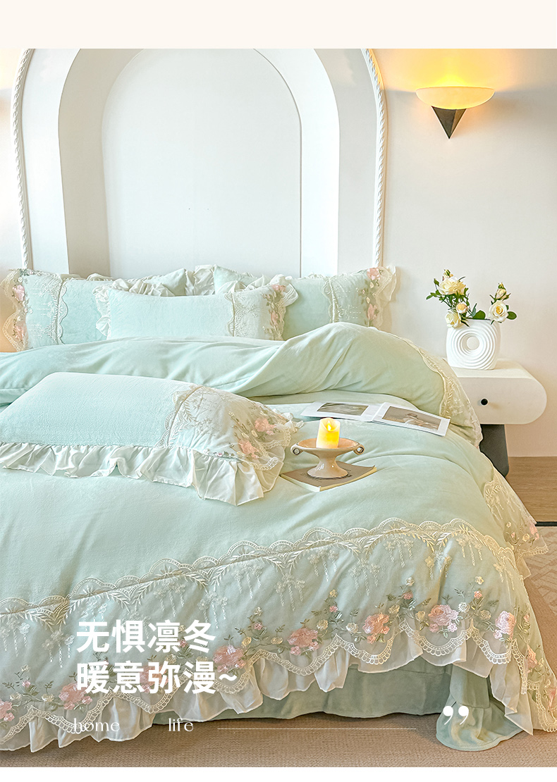 (总)凯美家居 2025新款A类牛奶绒蕾丝刺绣四件套-锦上添花