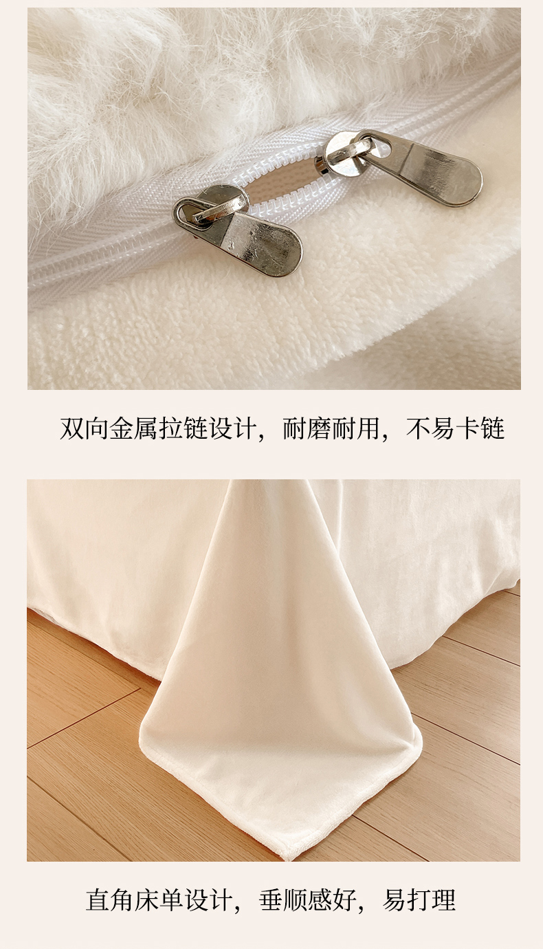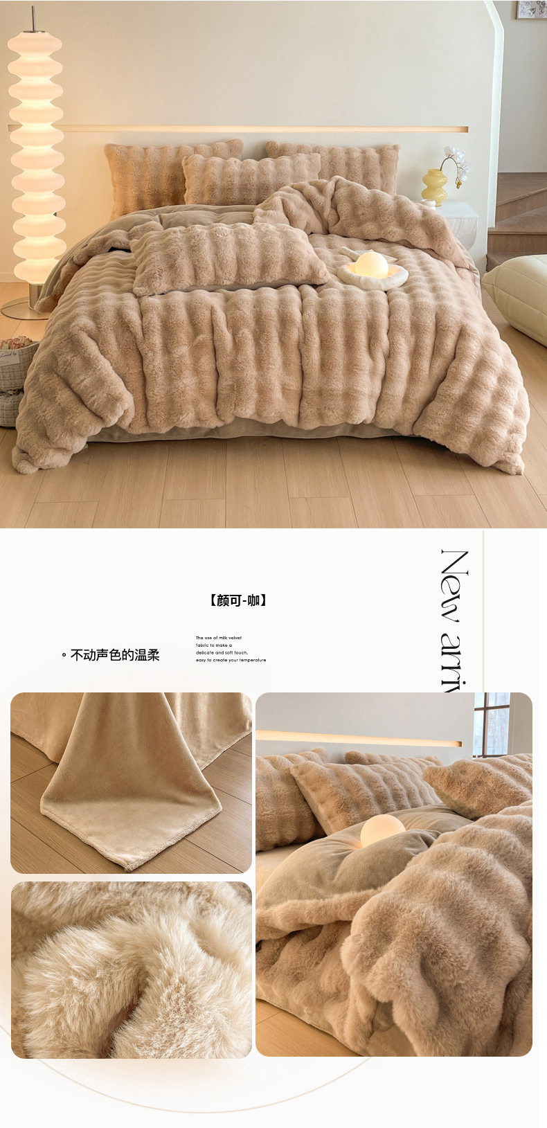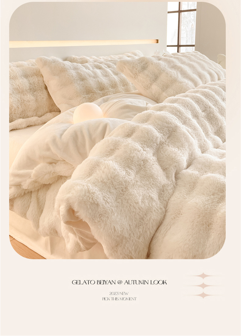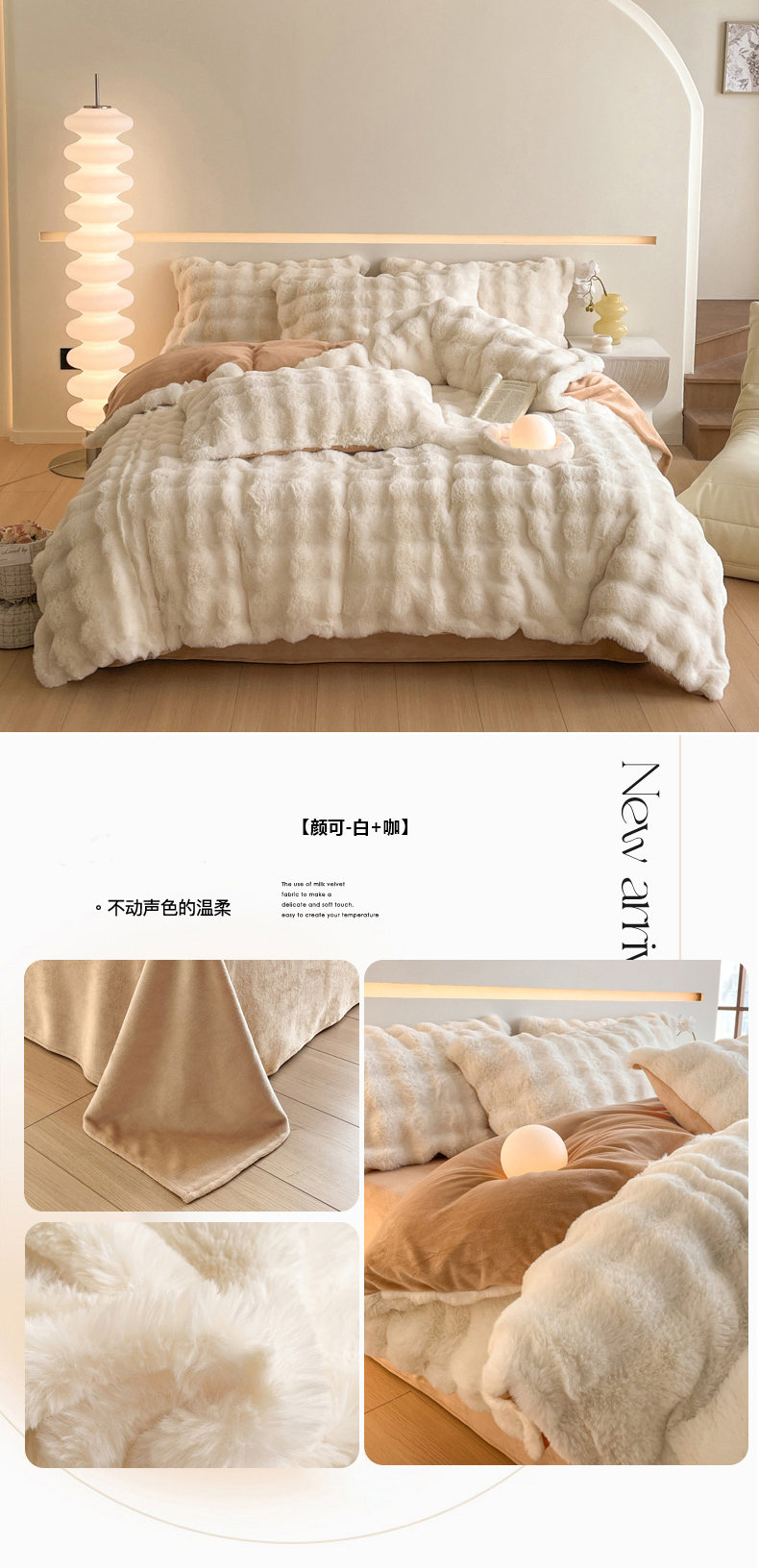 商品名称:曲之慕 2025新款高克重皮草绒牛奶绒兔毛四件套 颜可-白
