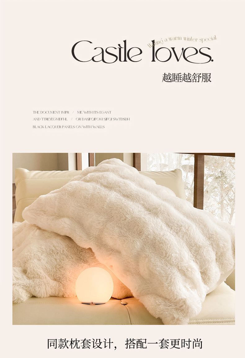 曲之慕 2025新款高克重皮草绒牛奶绒兔毛四件套 颜可-白