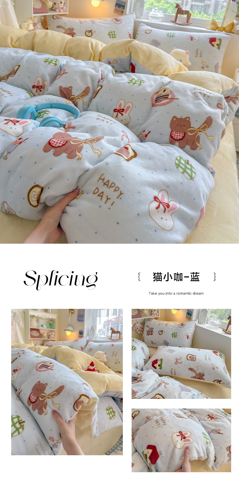 当前位置: 91家纺网 > 商品网购 > 床品套件 > 四件套 > 牛奶绒四件套 > 罗亿家纺 2025新款ins小清新少女奶油卡通可爱加厚200克牛奶绒四件套【3.6公斤】(小红书推荐) 梦栀