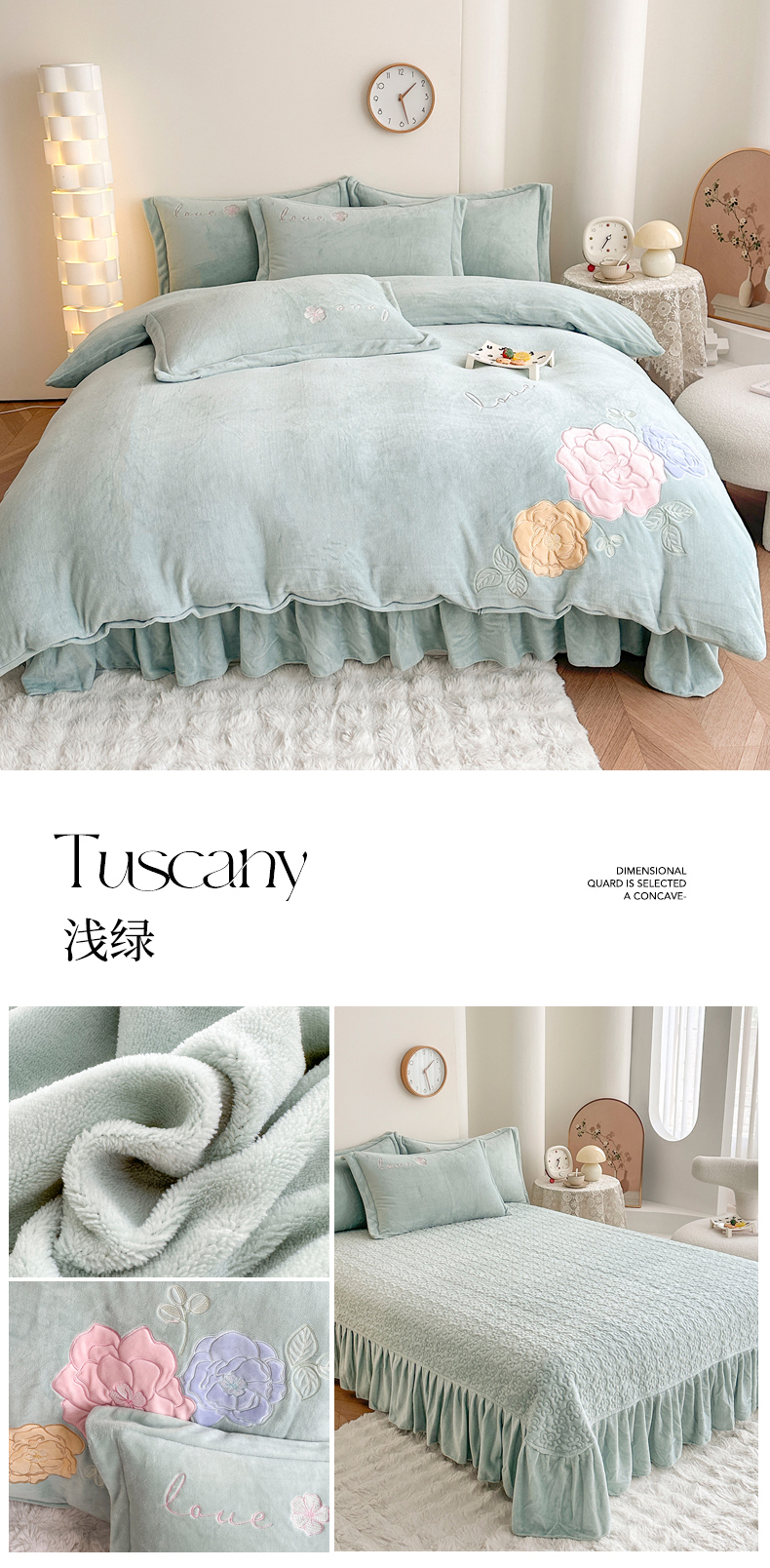 (总)美伦美焕 2025新款獭獭绒贴布绣床盖款四件套,薄荷绿,豆沙,高级灰,雾霾蓝,香芋紫