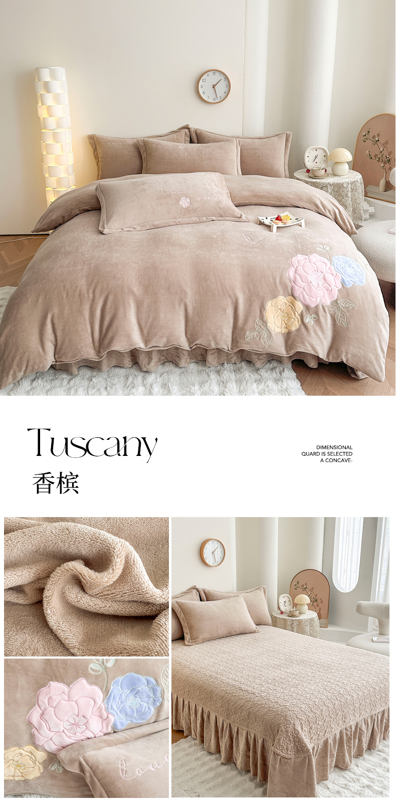 (总)美伦美焕 2025新款加厚雕花绒床盖款四件套-浅叶,浅叶-粉玉,浅叶-卡其,浅叶-绅士灰,浅叶-蔚蓝,浅叶-胭脂红