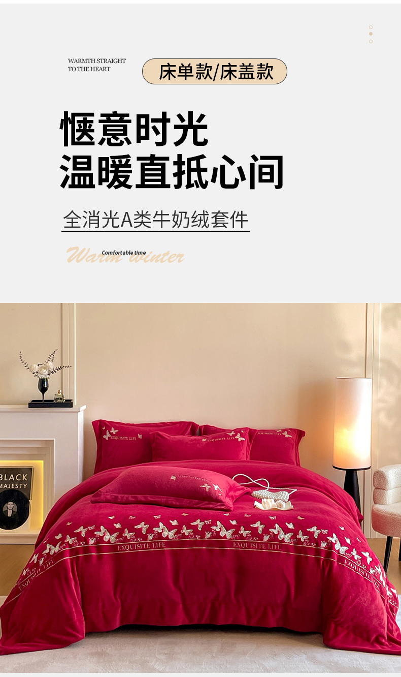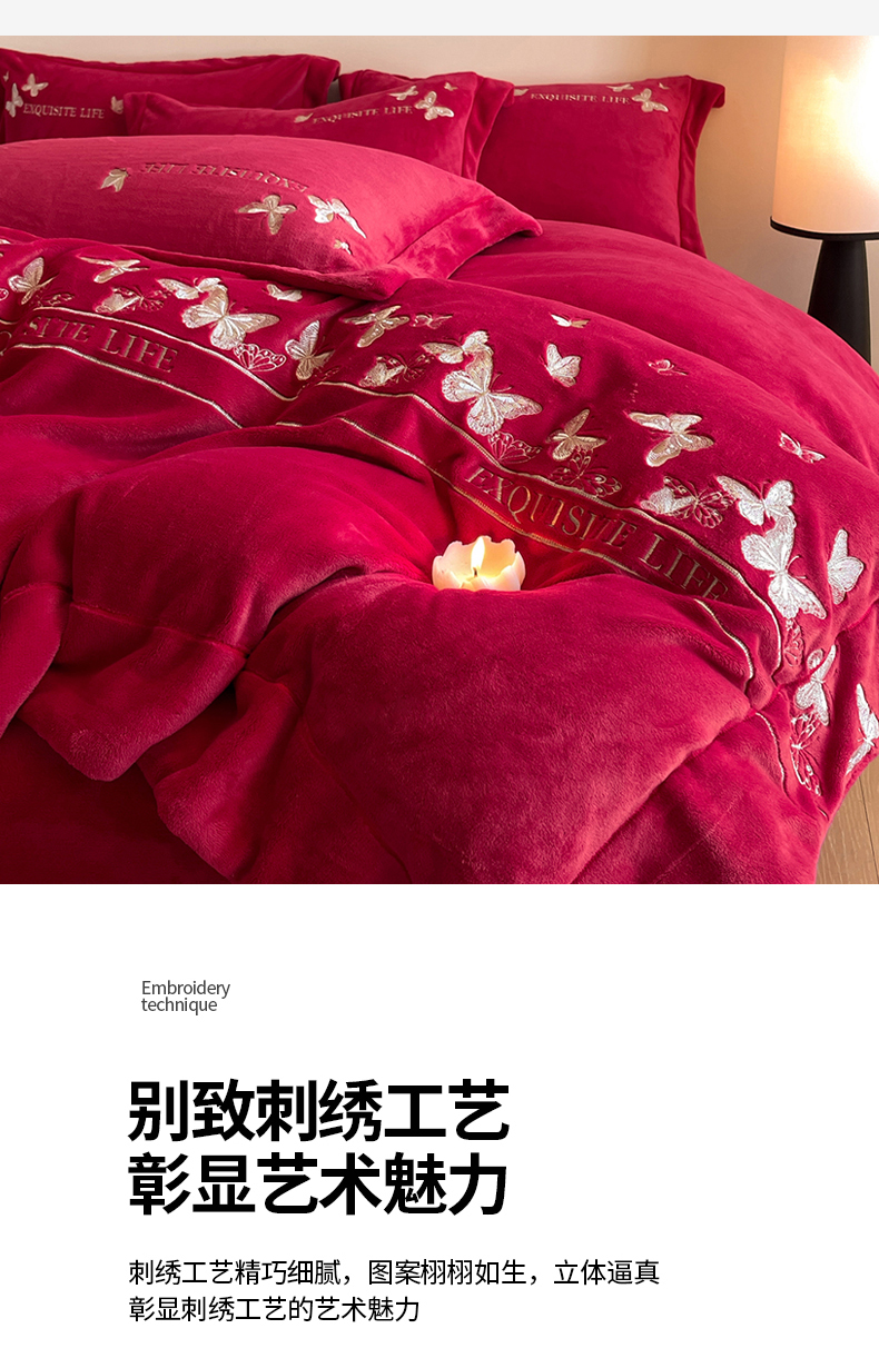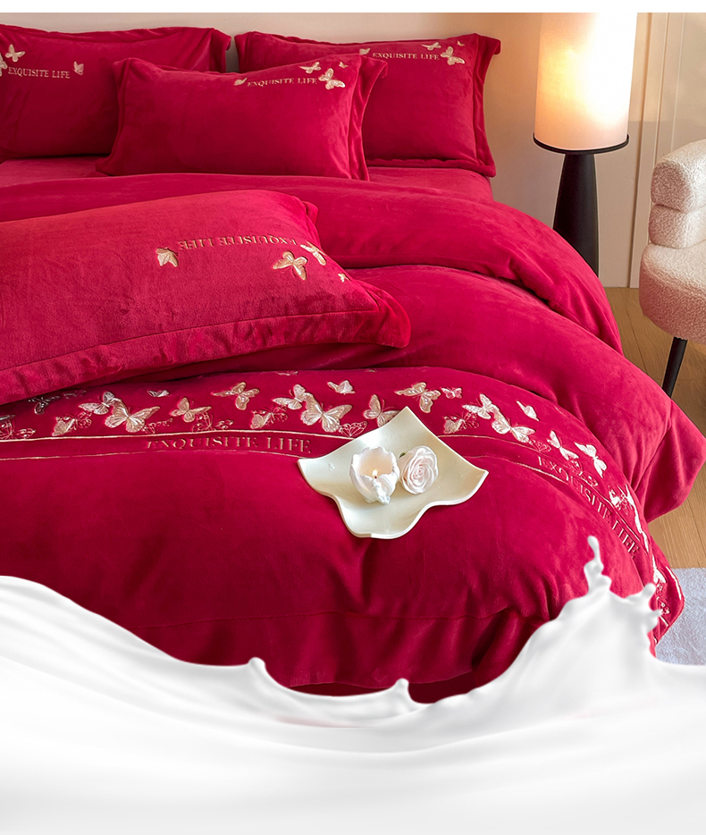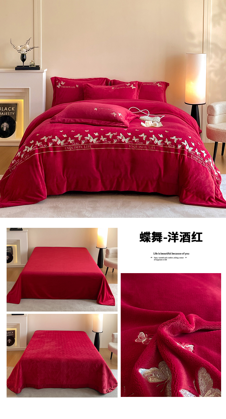 当前位置: 91家纺网 > 商品网购 > 床品套件 > 四件套 > 牛奶绒四件套 > 新方向 2025新款高克重240克A类全消光刺绣牛奶绒四件套-蝶舞 蝶舞-洋酒红