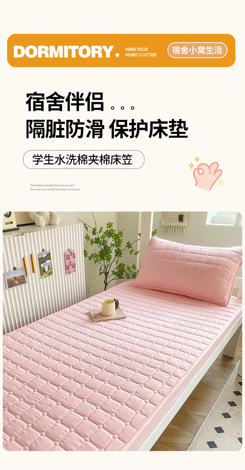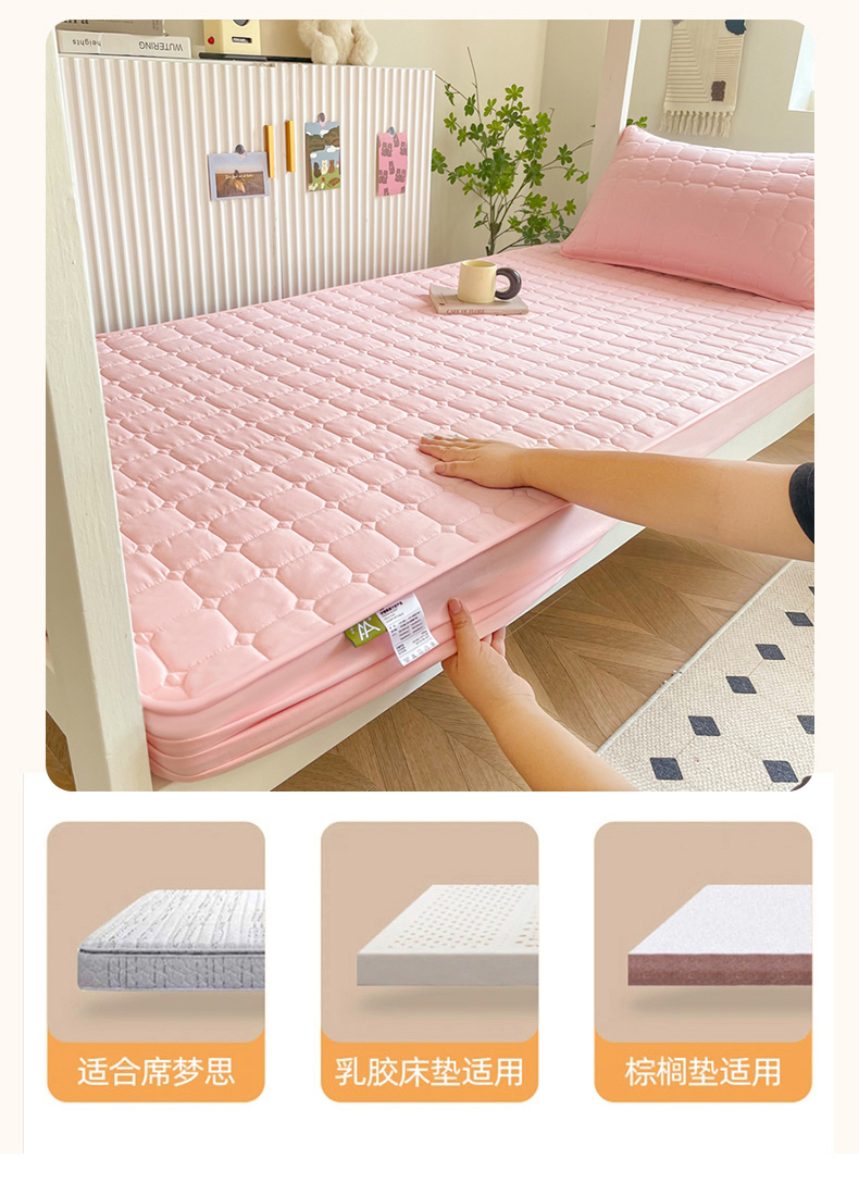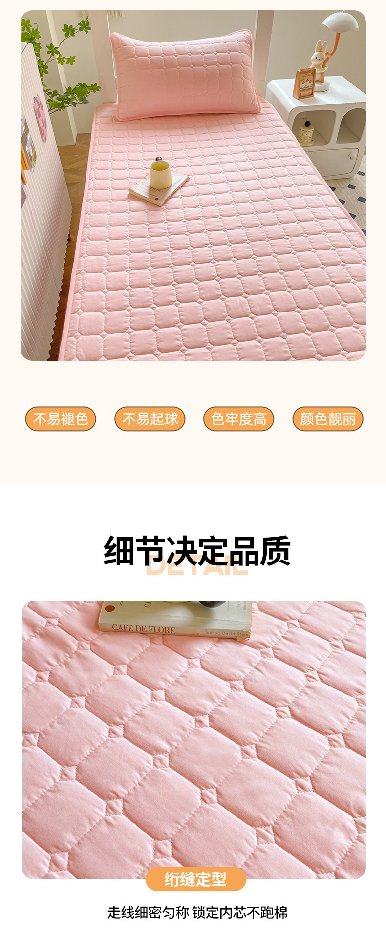 小禹仔家纺 2025新款亲肤面包格夹棉床笠-学生图 面包格-粉