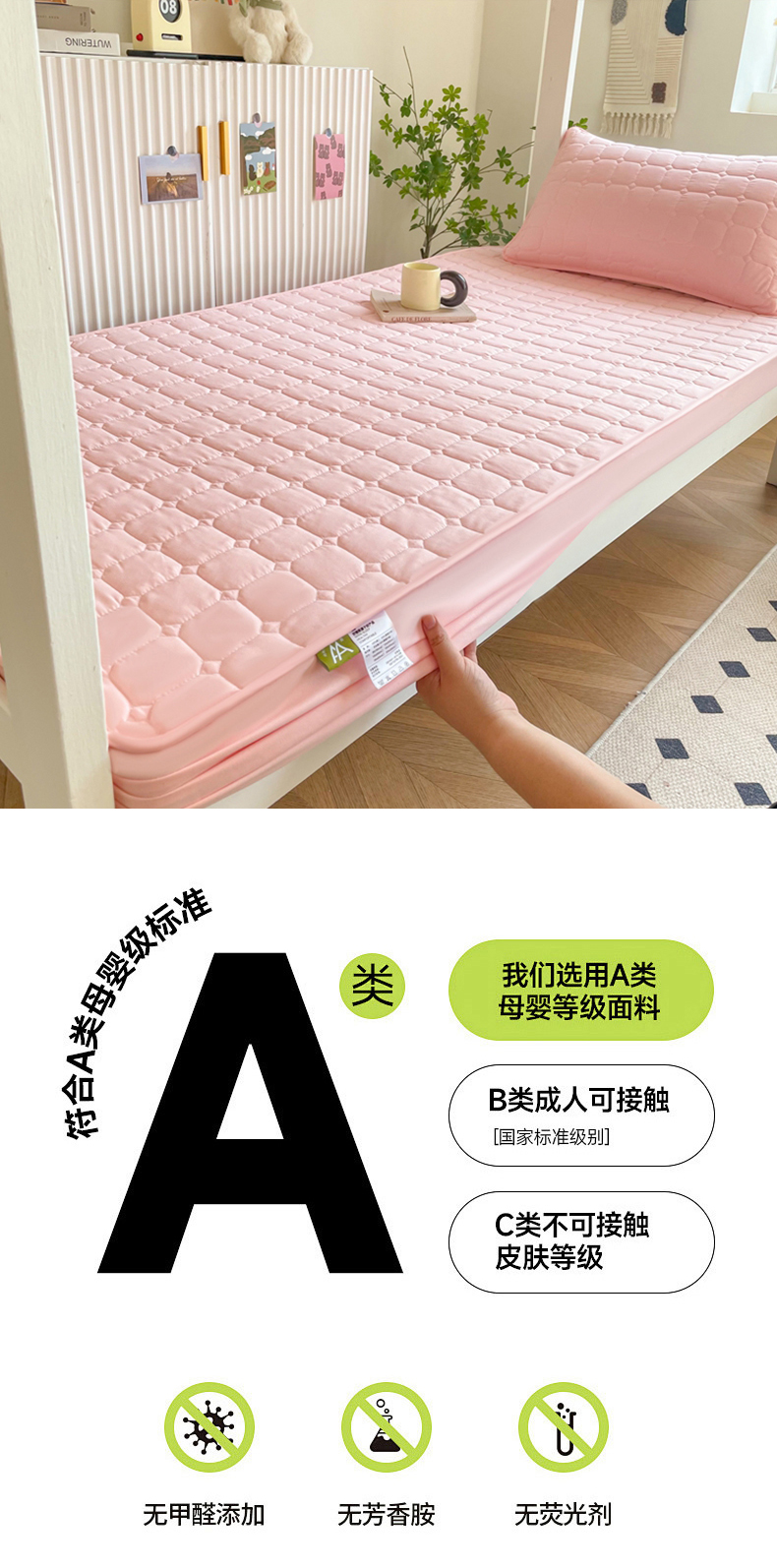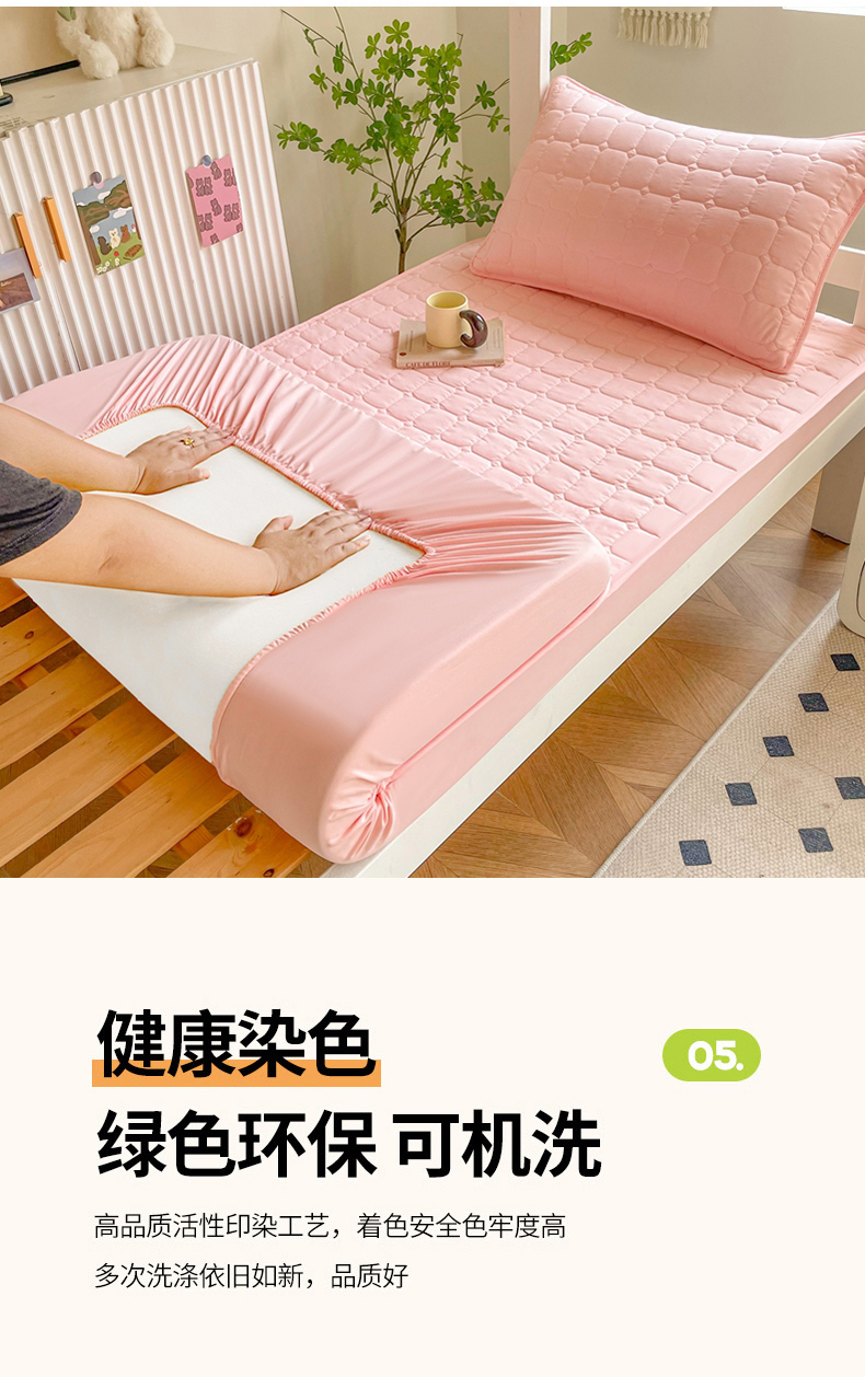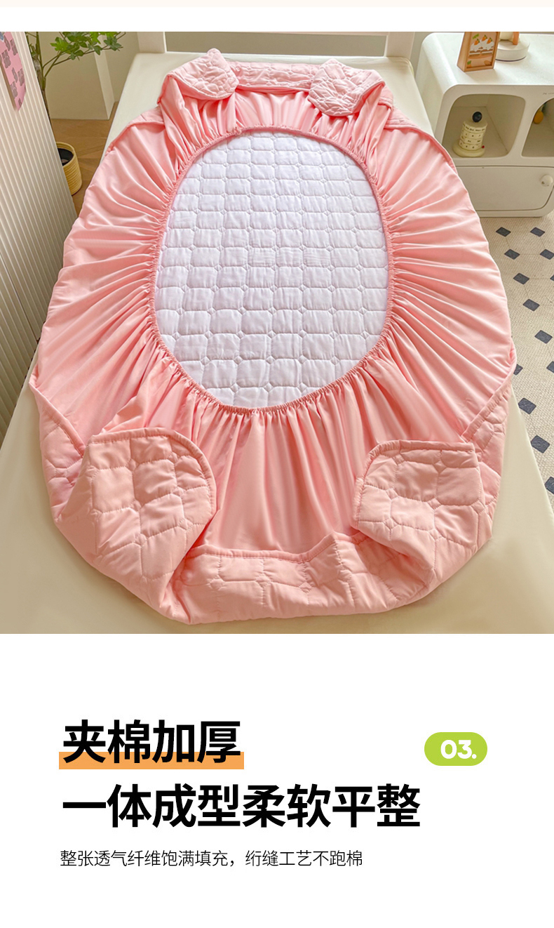 小禹仔家纺 2025新款亲肤面包格夹棉床笠-学生图 面包格-粉