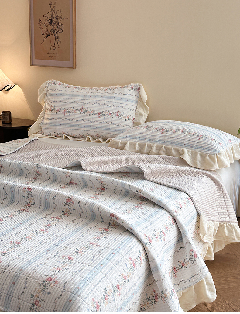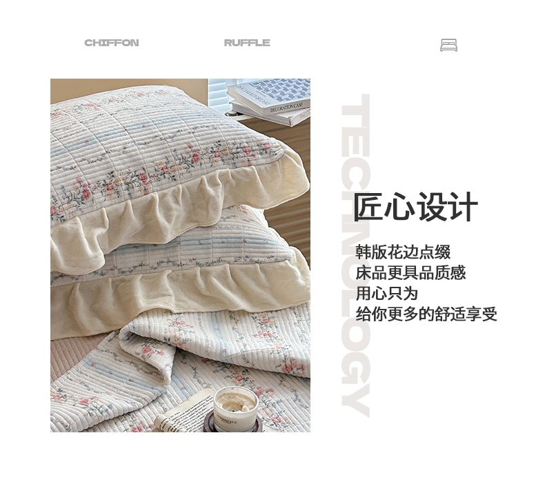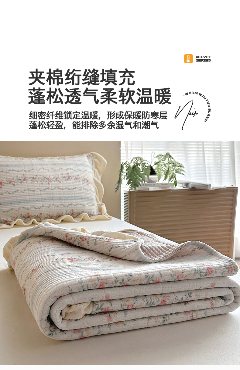 商品名称:桃心家居 2025新款韩版花边法式花卉碎花加厚牛奶绒多功能床盖单件单床盖床盖三件套单品 绒床盖-花边安夏