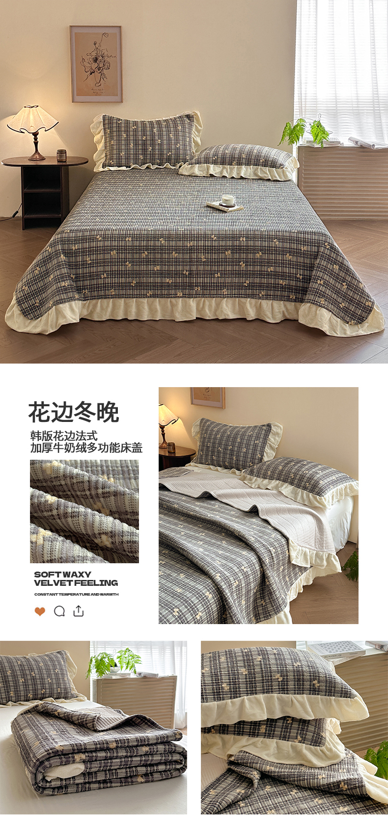 (总)桃心家居 2025新款韩版花边法式花卉碎花加厚牛奶绒多功能床盖单件单床盖床盖三件套单品,组合图仅供展示不可下单,绒床盖-花边安夏,绒床盖-花边北茉,绒床盖-花边冬晚,绒床盖-花边梦镜,绒床盖-花边梦雅,绒床盖-花边柠乐,绒床盖-花边清香,绒床盖-花边松石紫,绒床盖-花边微朵粉