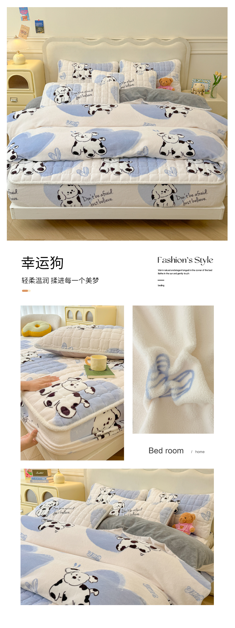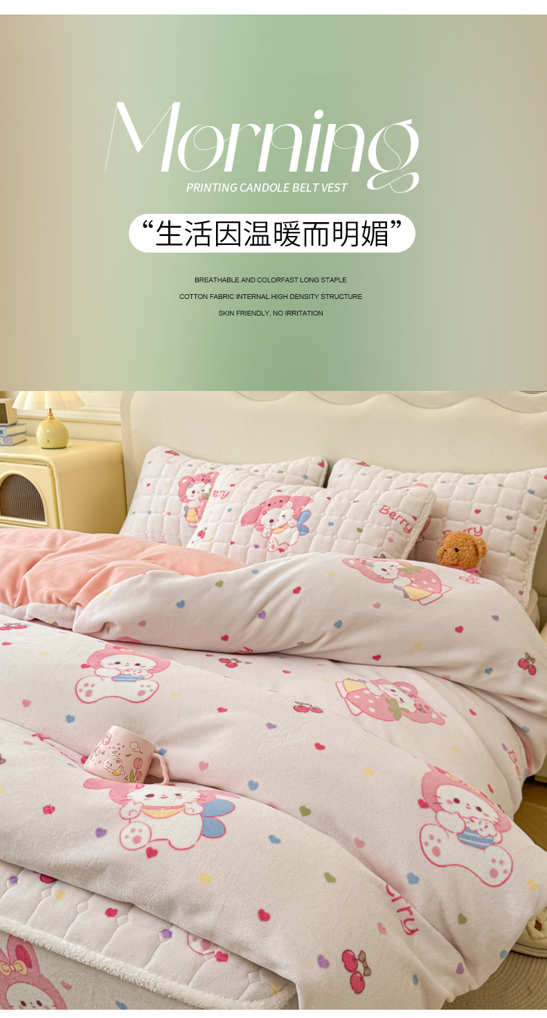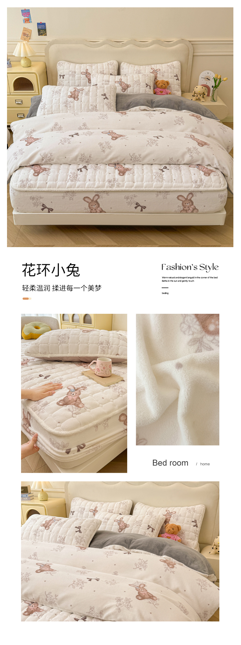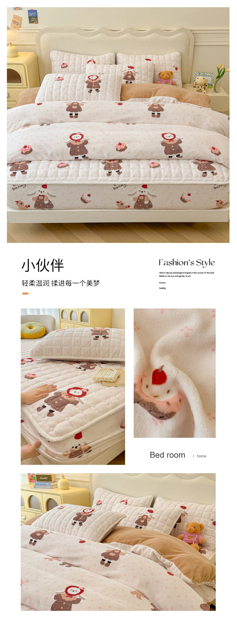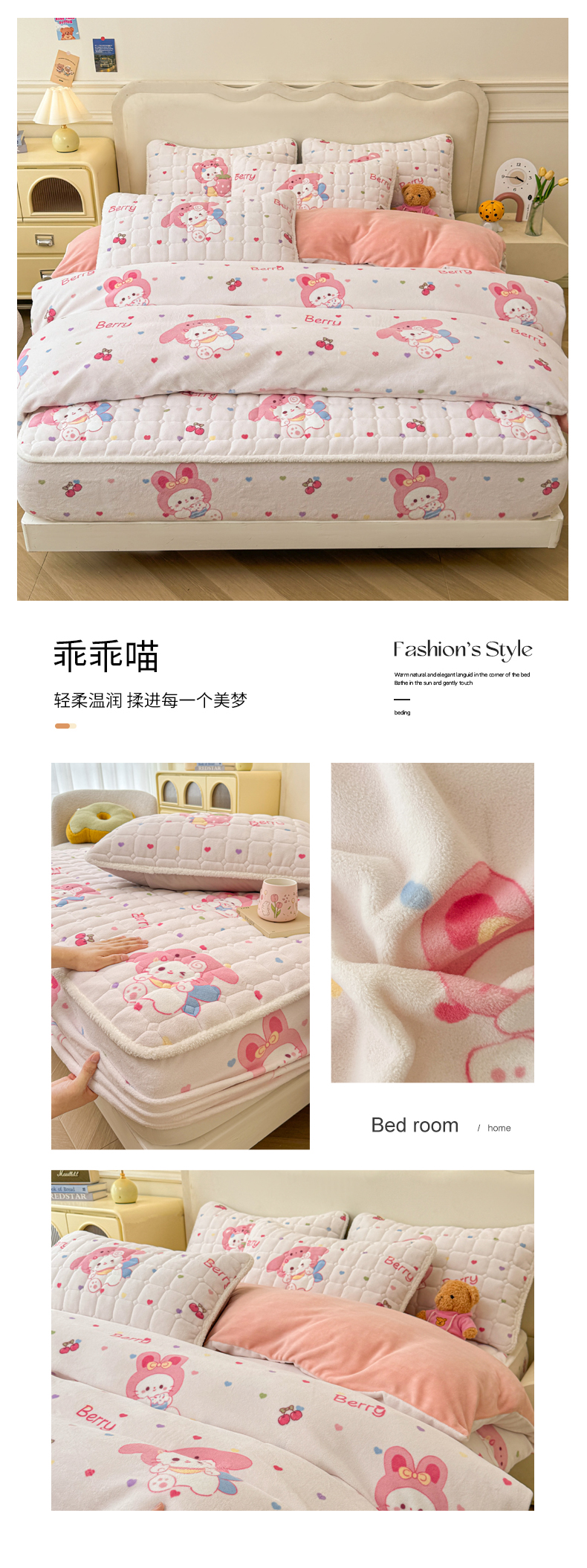商品名称:LIFE.丽芙 2025秋冬新款A类牛奶绒加厚夹棉床笠+被套组合四件套 乖乖喵