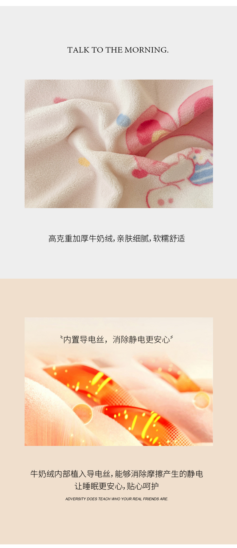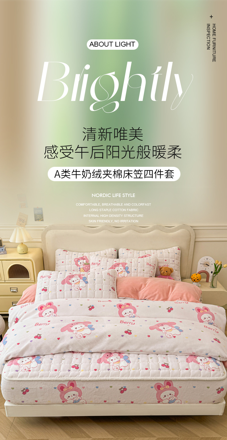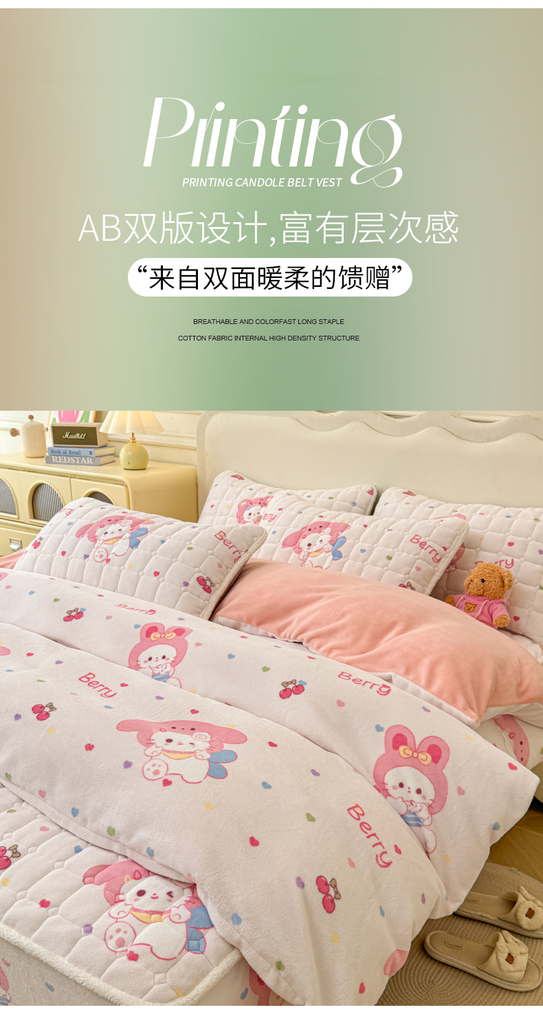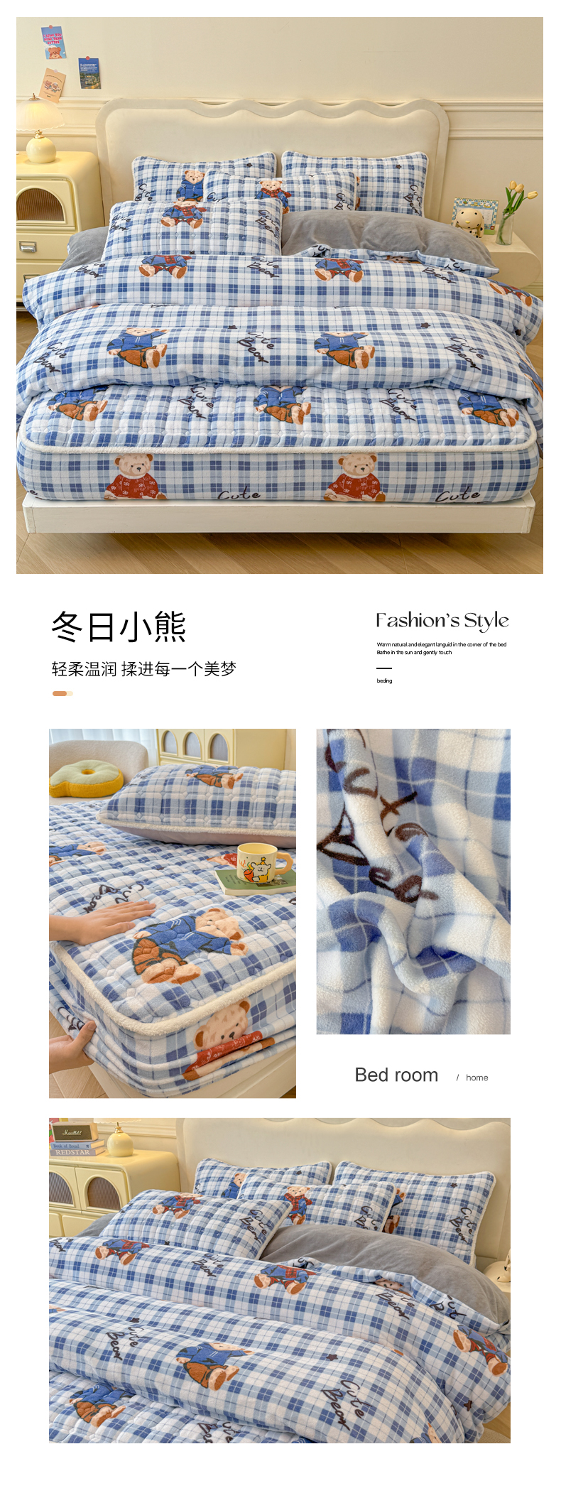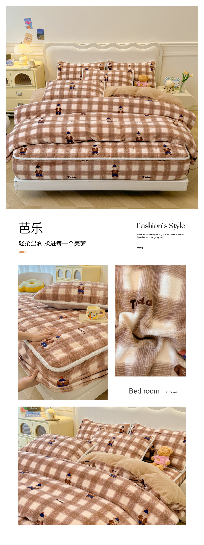 商品名称:LIFE.丽芙 2025秋冬新款A类牛奶绒加厚夹棉床笠+被套组合四件套 乖乖喵