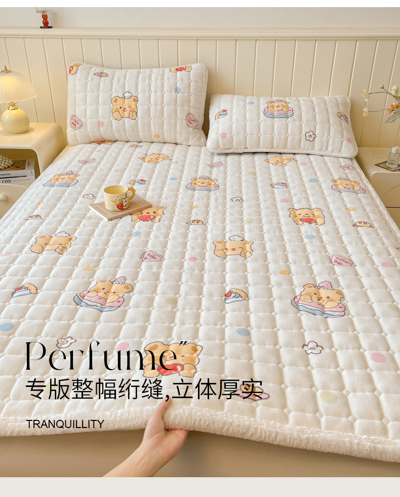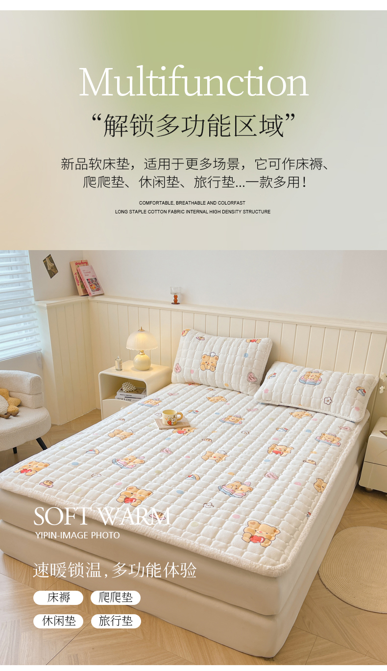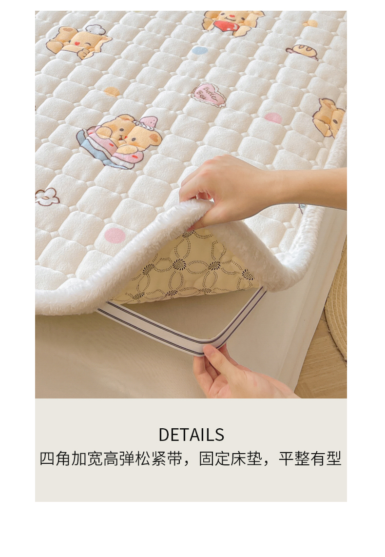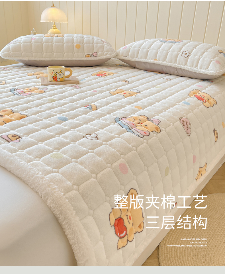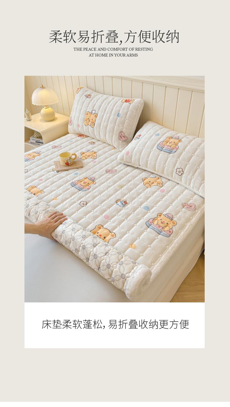 • 91家纺网 家纺一手货源 找家纺 LIFE.丽芙 2025秋冬新款牛奶绒加厚夹棉床垫床护垫单件印花卡通小清新床褥床垫子三件套 小熊包