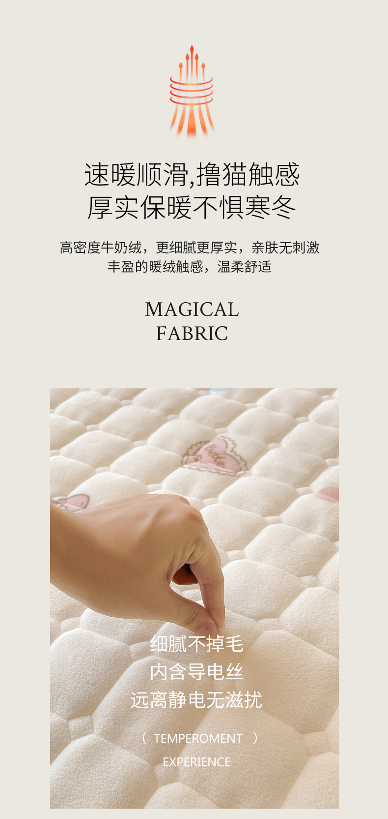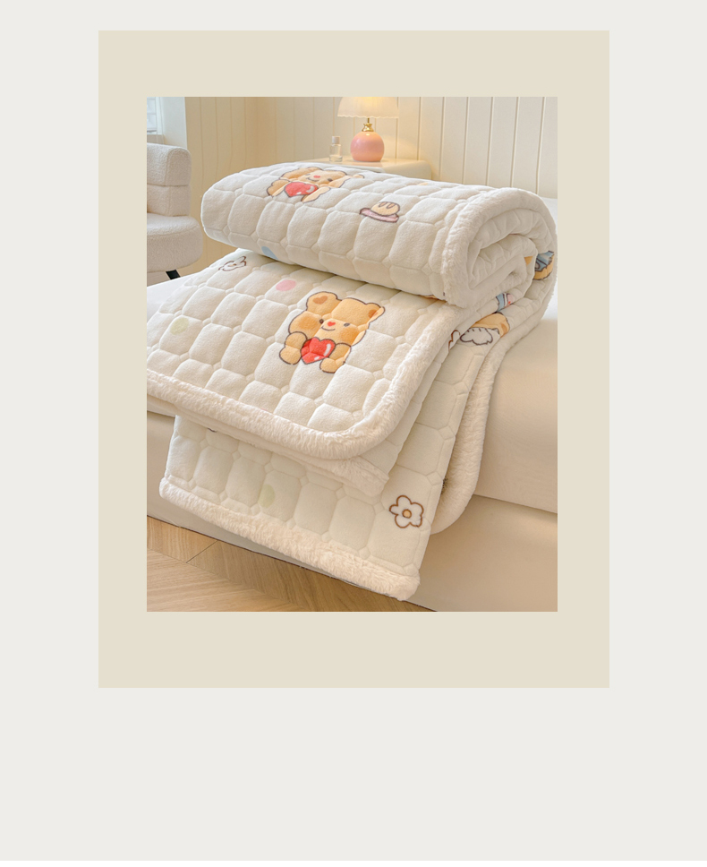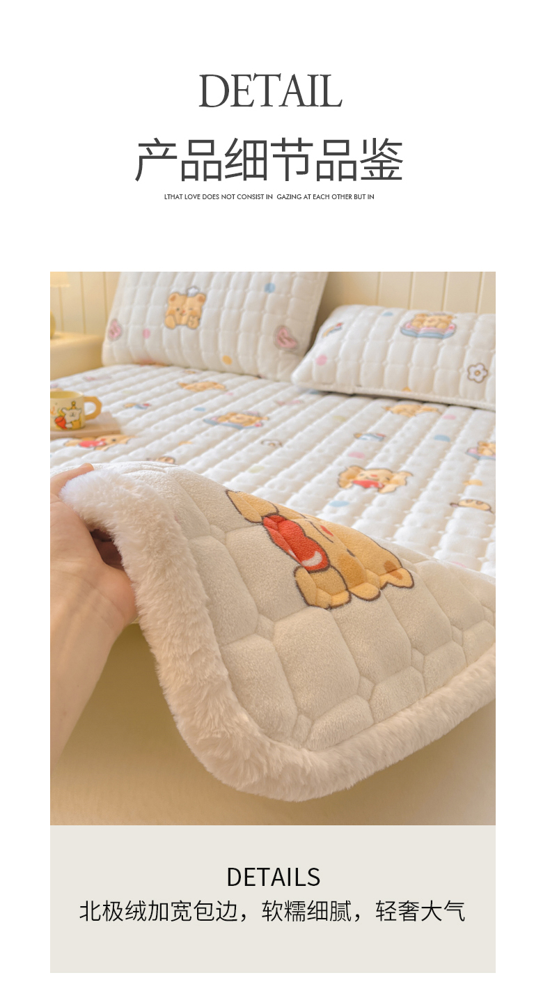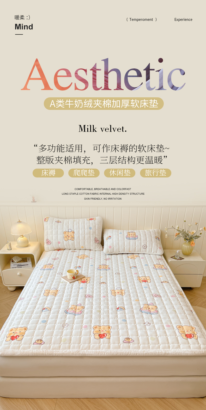 • 91家纺网 家纺一手货源 找家纺 LIFE.丽芙 2025秋冬新款牛奶绒加厚夹棉床垫床护垫单件印花卡通小清新床褥床垫子三件套 小熊包