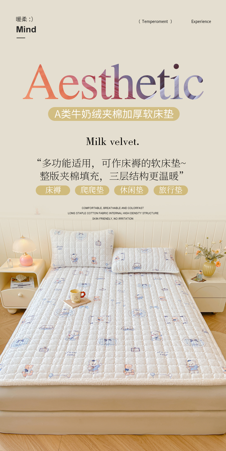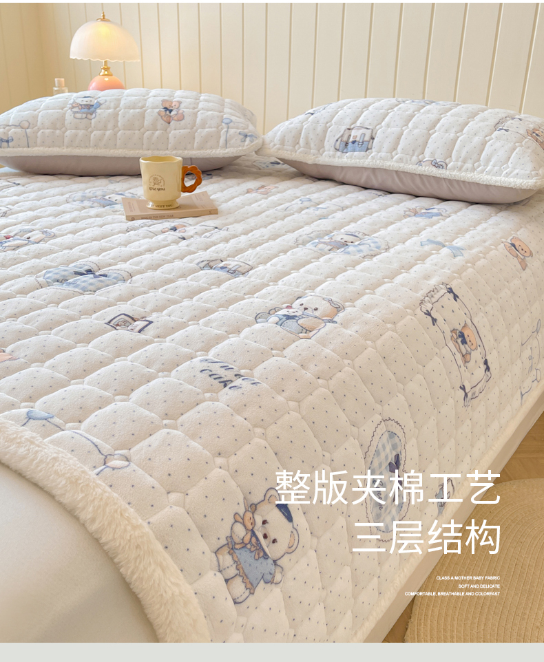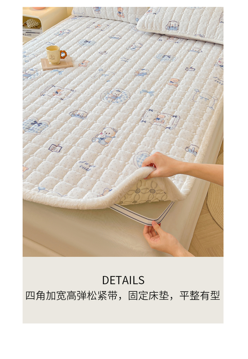 • 91家纺网 家纺一手货源 找家纺 LIFE.丽芙 2025秋冬新款牛奶绒加厚夹棉床垫床护垫单件印花卡通小清新床褥床垫子三件套 贝果宝贝