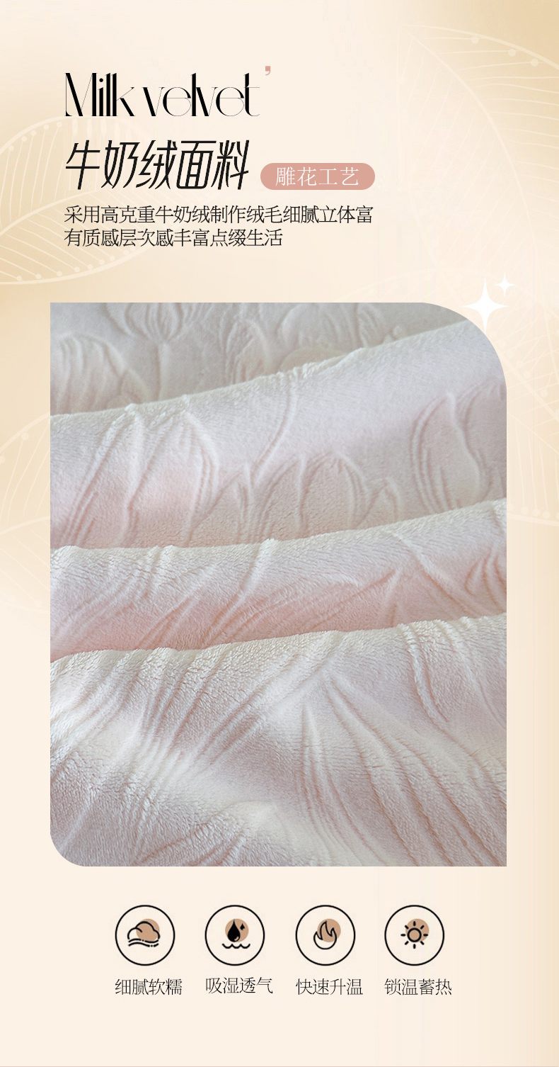 商品名称:畅畅家纺 2025新款高克重织带款冬季保暖牛奶绒雕花床单四件套 枫叶-绿