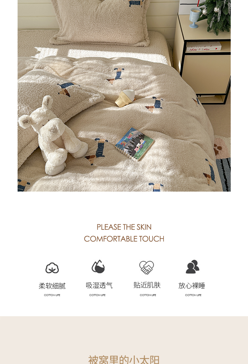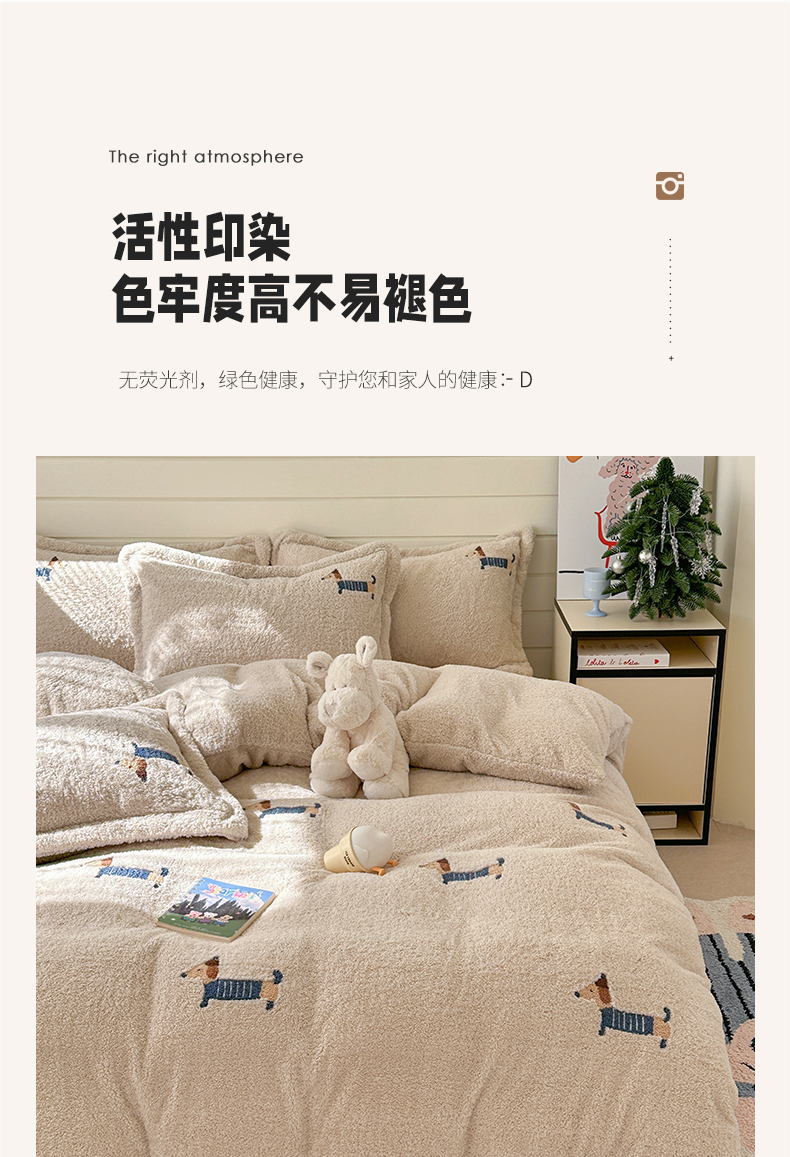 (总)萝莉家纺 2025新款加厚泰迪绒毛巾绣四件套,腊肠狗蓝,可爱狗米白,可爱狗深米,礼帽狗,圣诞树黄,小免蓝,小木马少女粉,小木马水兰,小企鹅豆沙粉,小企鹅米白,小兔茶粉,小熊奶白,熊豆绿,熊猫白,熊猫紫