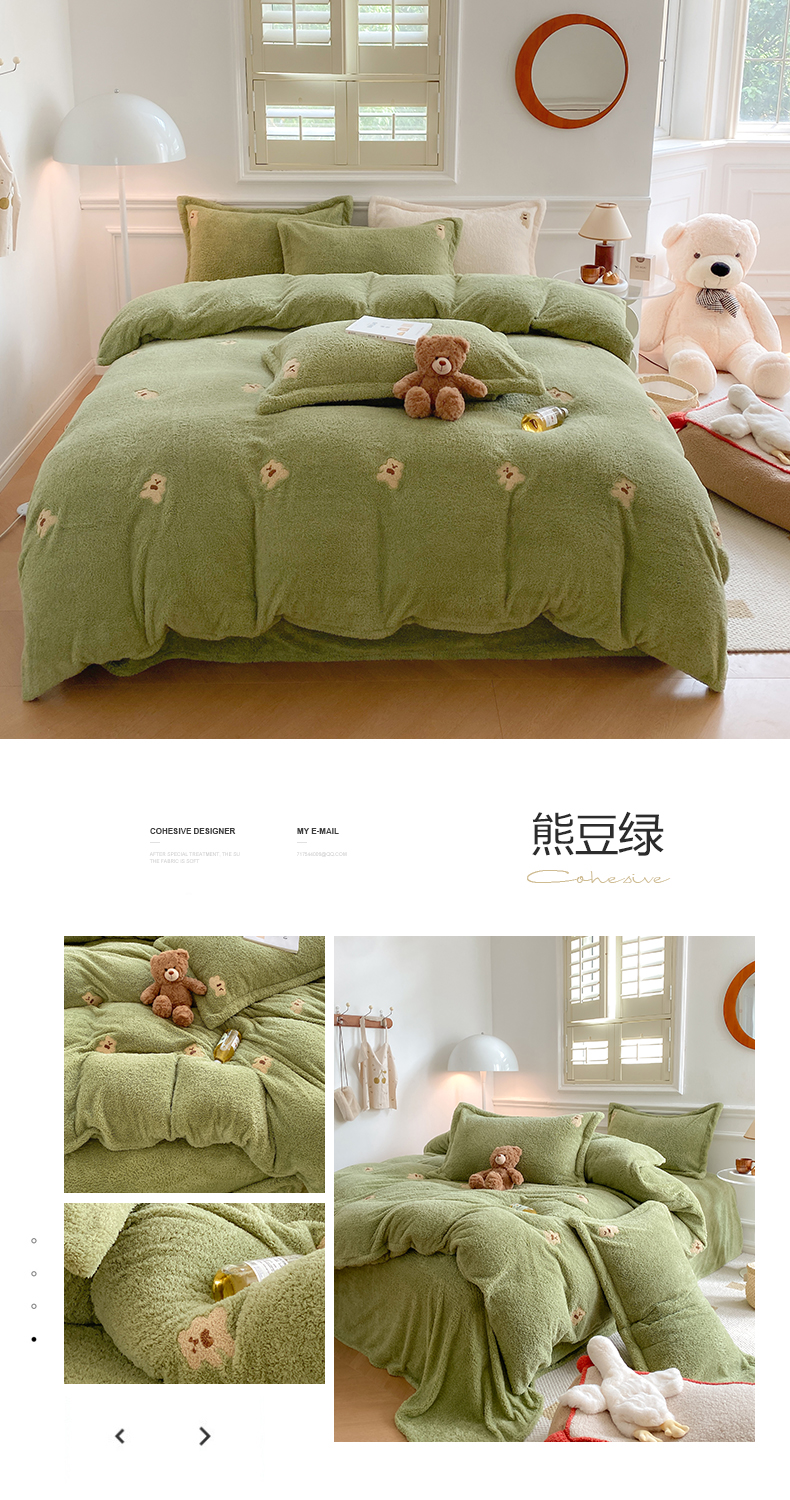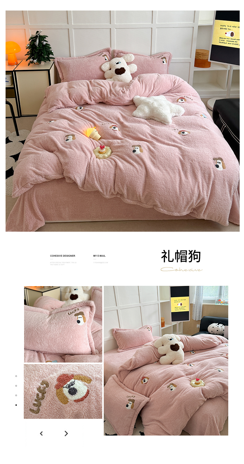 (总)萝莉家纺 2023新款230克高克重软绵绵的泰迪绒四件套,小免蓝,小木马少女粉,小木马水兰,小兔茶粉,小熊奶白,熊豆绿