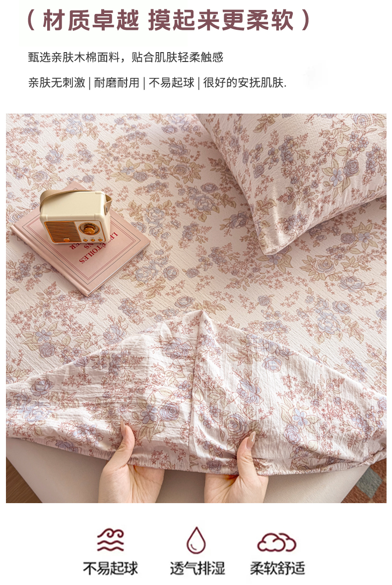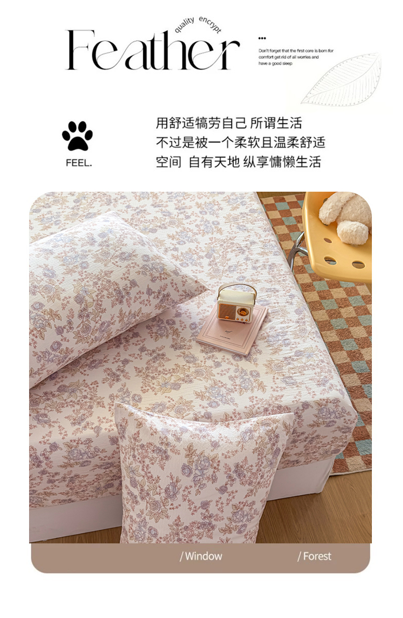 • 91家纺网 家纺一手货源 找家纺 爱彼家纺 2025新款水洗水洗棉印花床笠单品床笠床笠三件套风格一 淡彩花漾