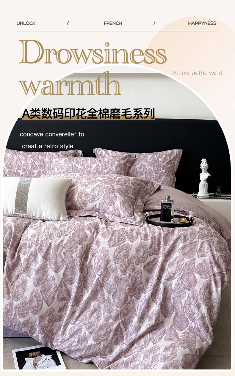 当前位置: 91家纺网 > 商品网购 > 床品套件 > 四件套 > 普通磨毛四件套 > 梵克保罗 2025秋冬新款数码印花全棉磨毛单被套三件套四件套系列 如伊-咖