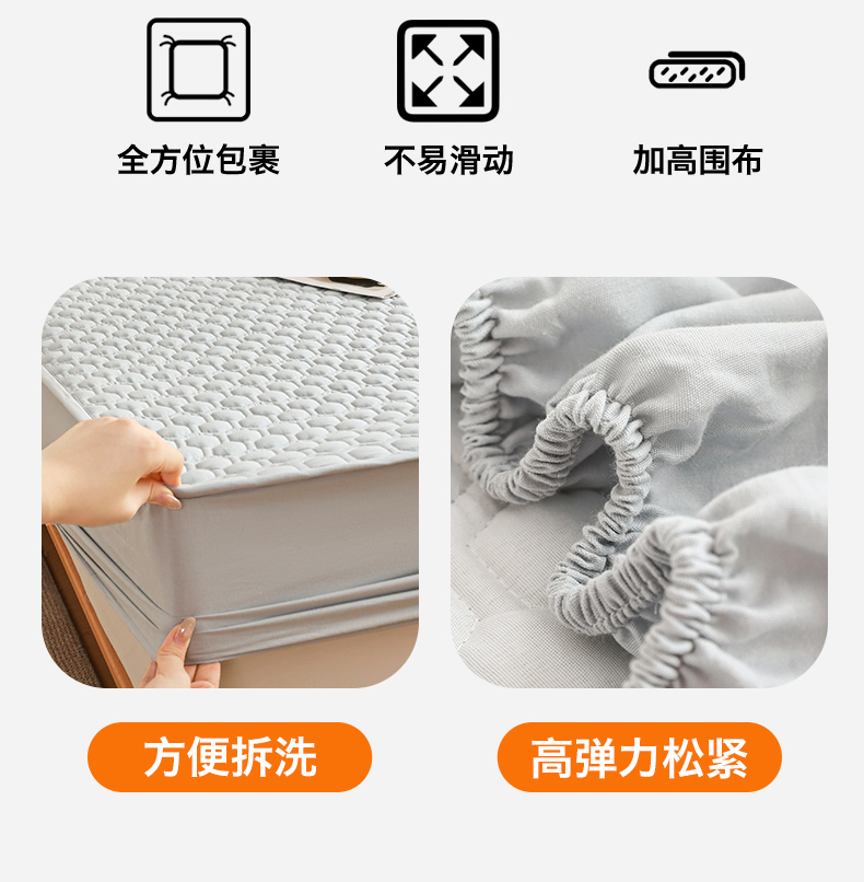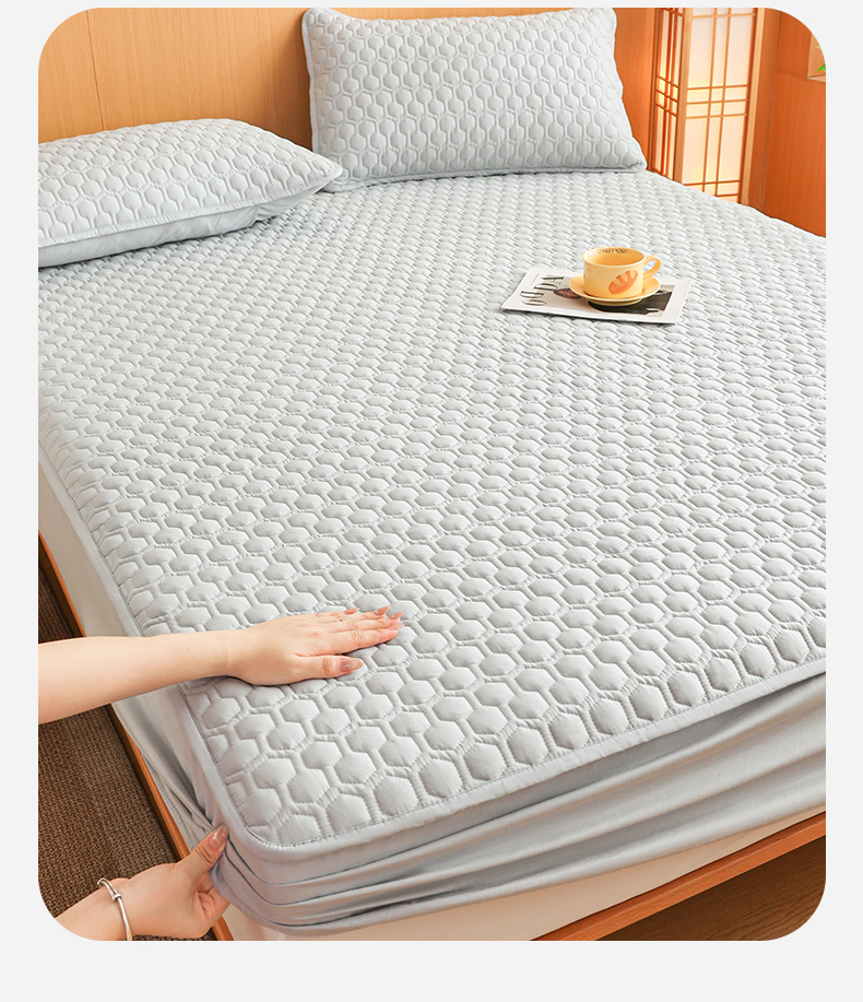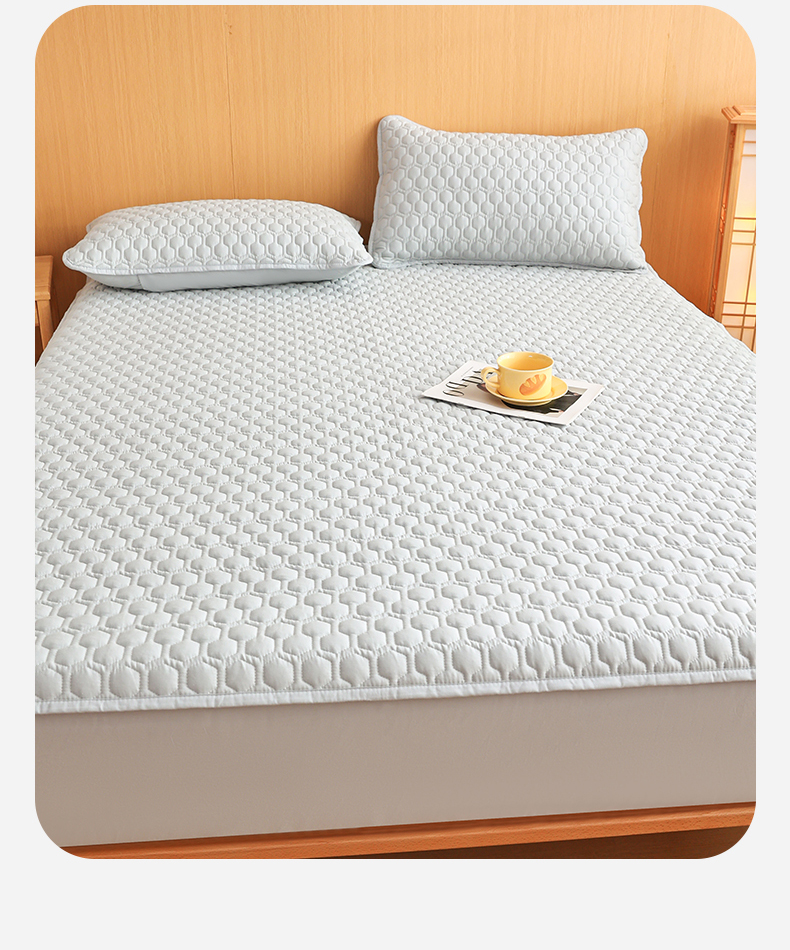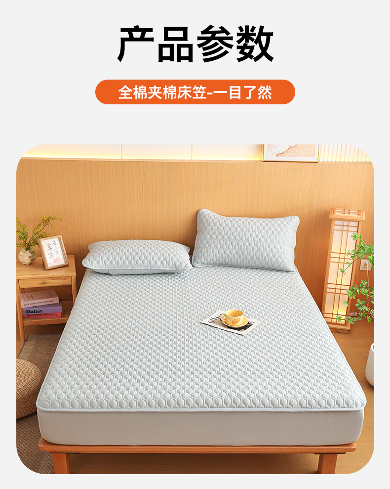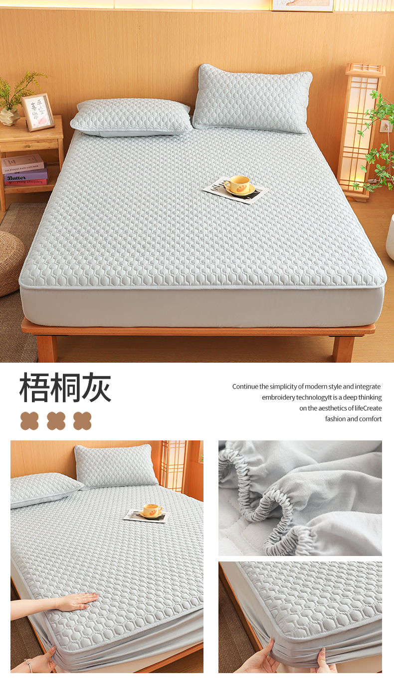 • 91家纺网 家纺一手货源 找家纺 恒爱家纺 2025新款全棉绗绣单品床笠 梧桐灰