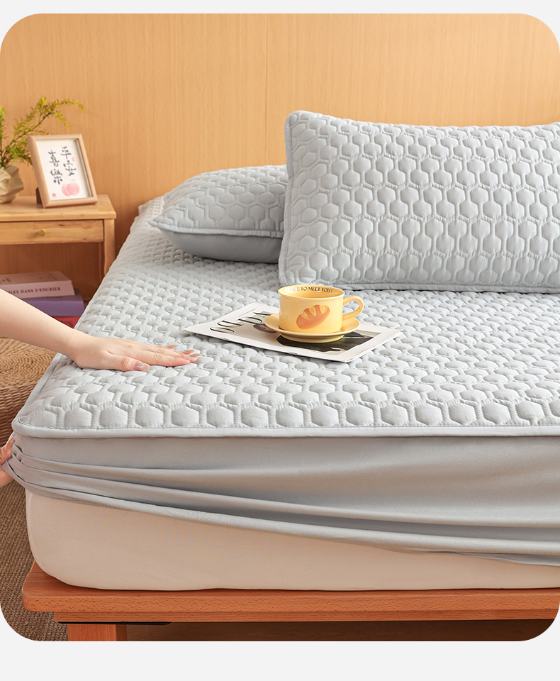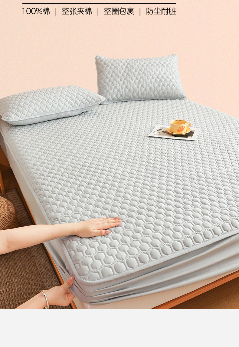 恒爱家纺 2025新款全棉绗绣单品床笠 梧桐灰