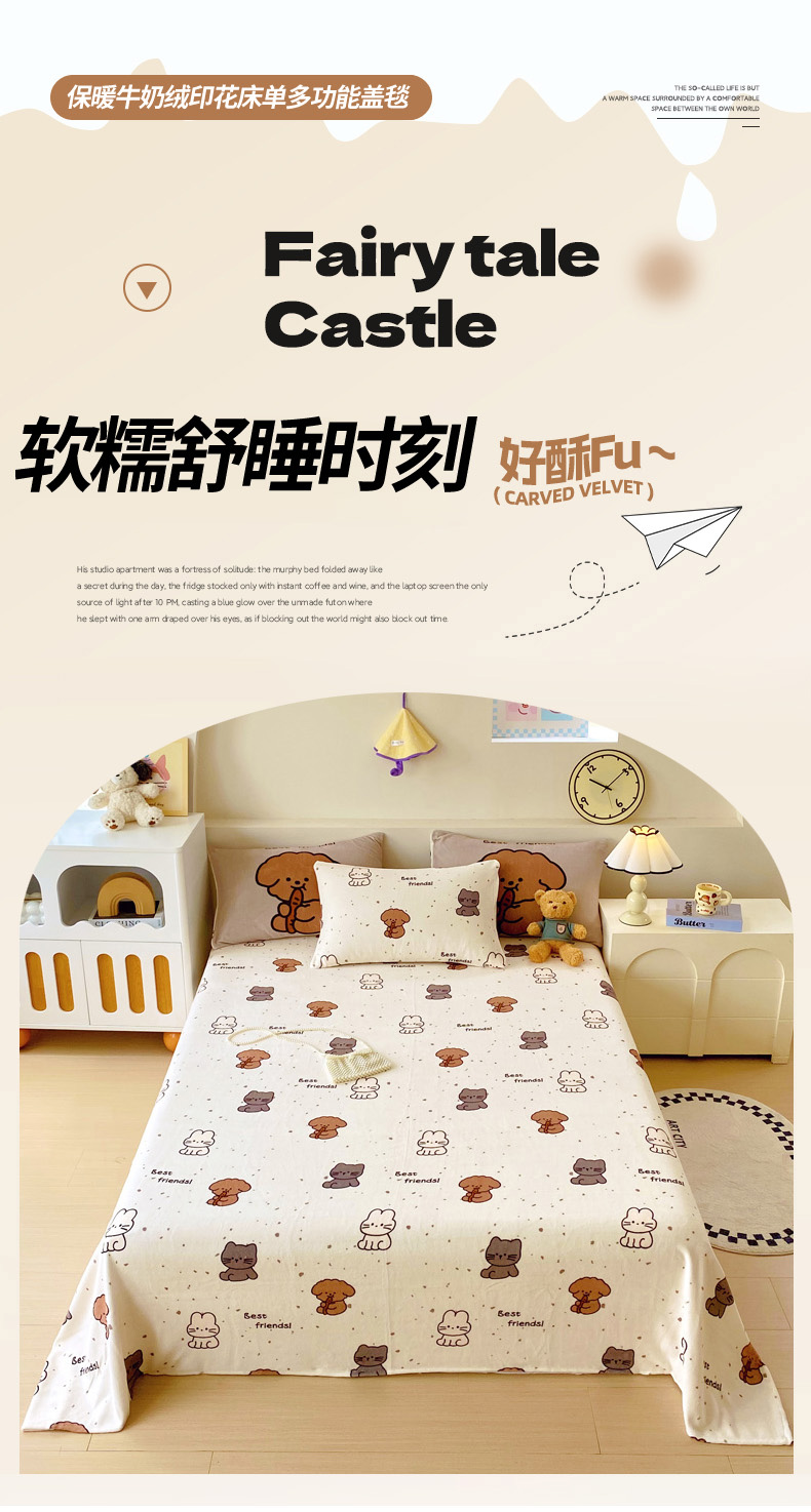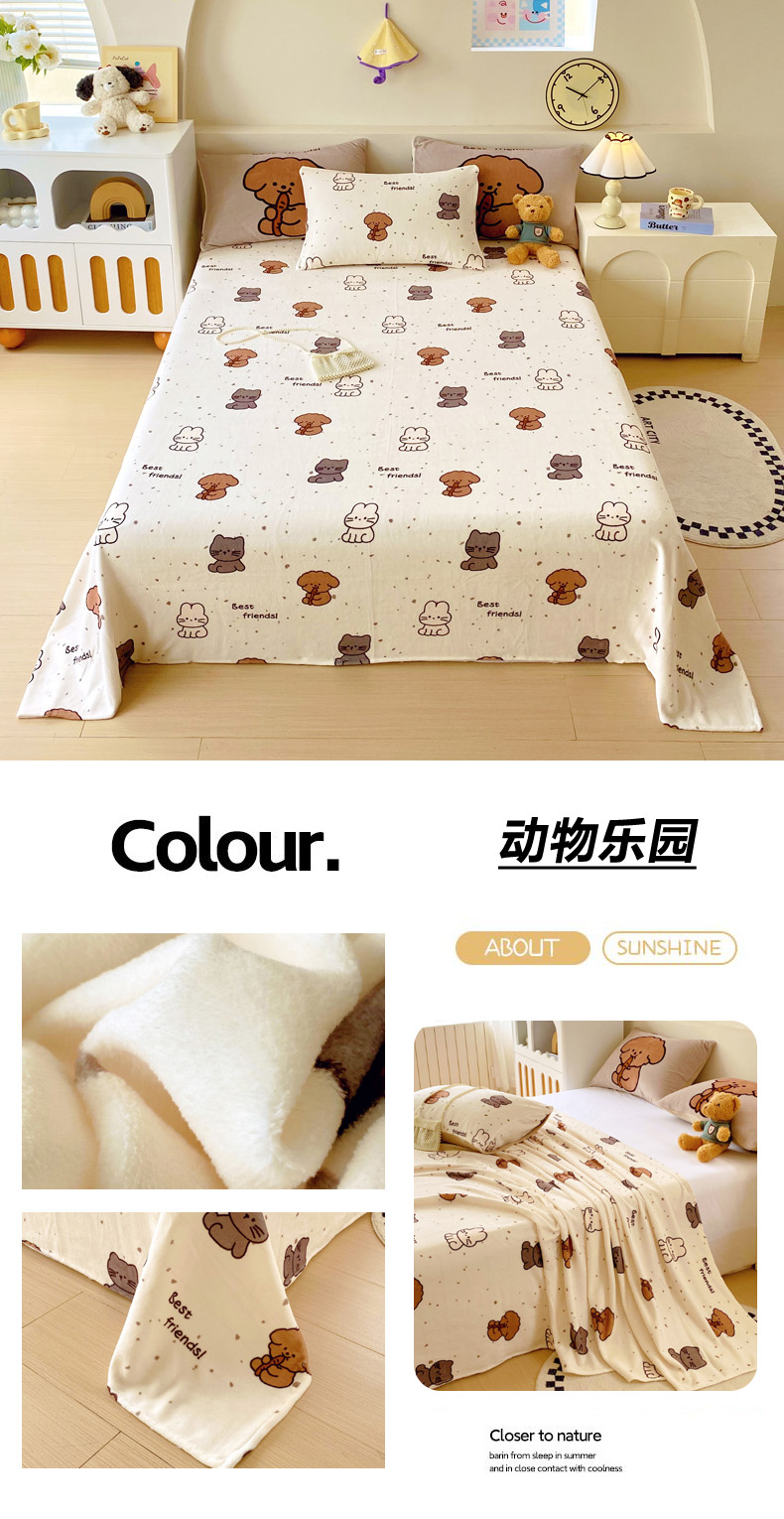 • 91家纺网 家纺一手货源 找家纺 葡萄家 2025年新款牛奶绒印花单床单萌系卡通床单款 动物乐园