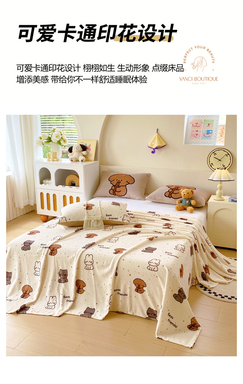 (总)葡萄家 2025年新款牛奶绒印花单床单萌系卡通床单款,豹纹猫,比熊,布丁猫,冬日狗,动物乐园,滑板熊猫,卡通乐园,拉蒙,腊肠狗,蓝格猫咪,猫千金红,莫妮卡,泡芙狗,俏皮狗,软萌猫蓝