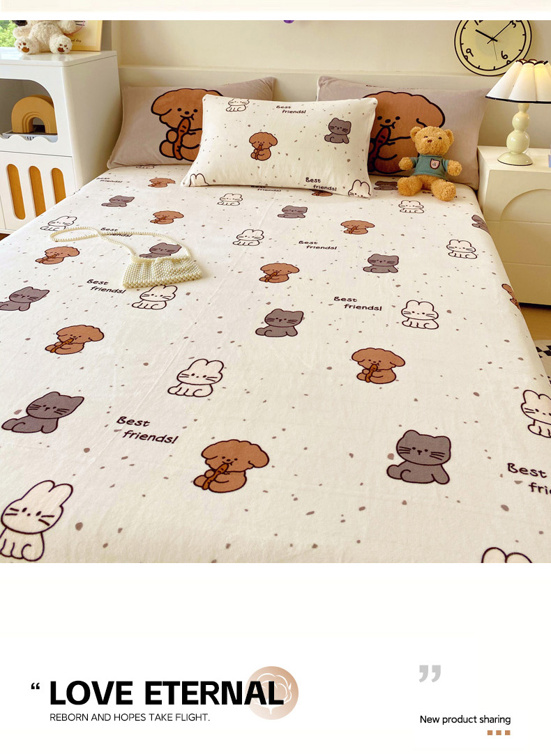(总)葡萄家 2025年新款新增花型牛奶绒印花单床笠萌系卡通单品床笠床笠单件,哈曼猫,豹纹猫粉,豹纹猫蓝,波西狗,萱花,雪花熊