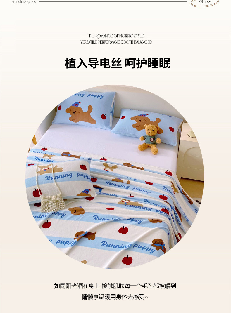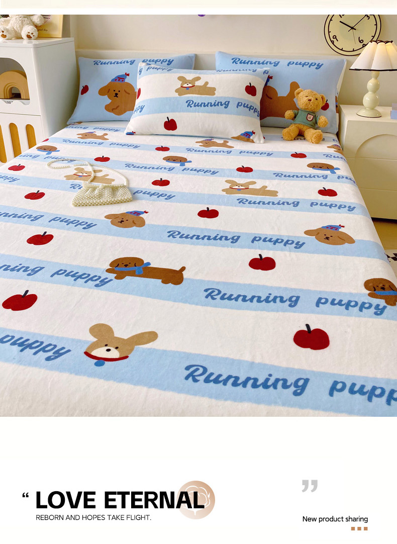 • 91家纺网 家纺一手货源 找家纺 葡萄家 2025年新款牛奶绒印花单床单萌系卡通床单款 俏皮狗