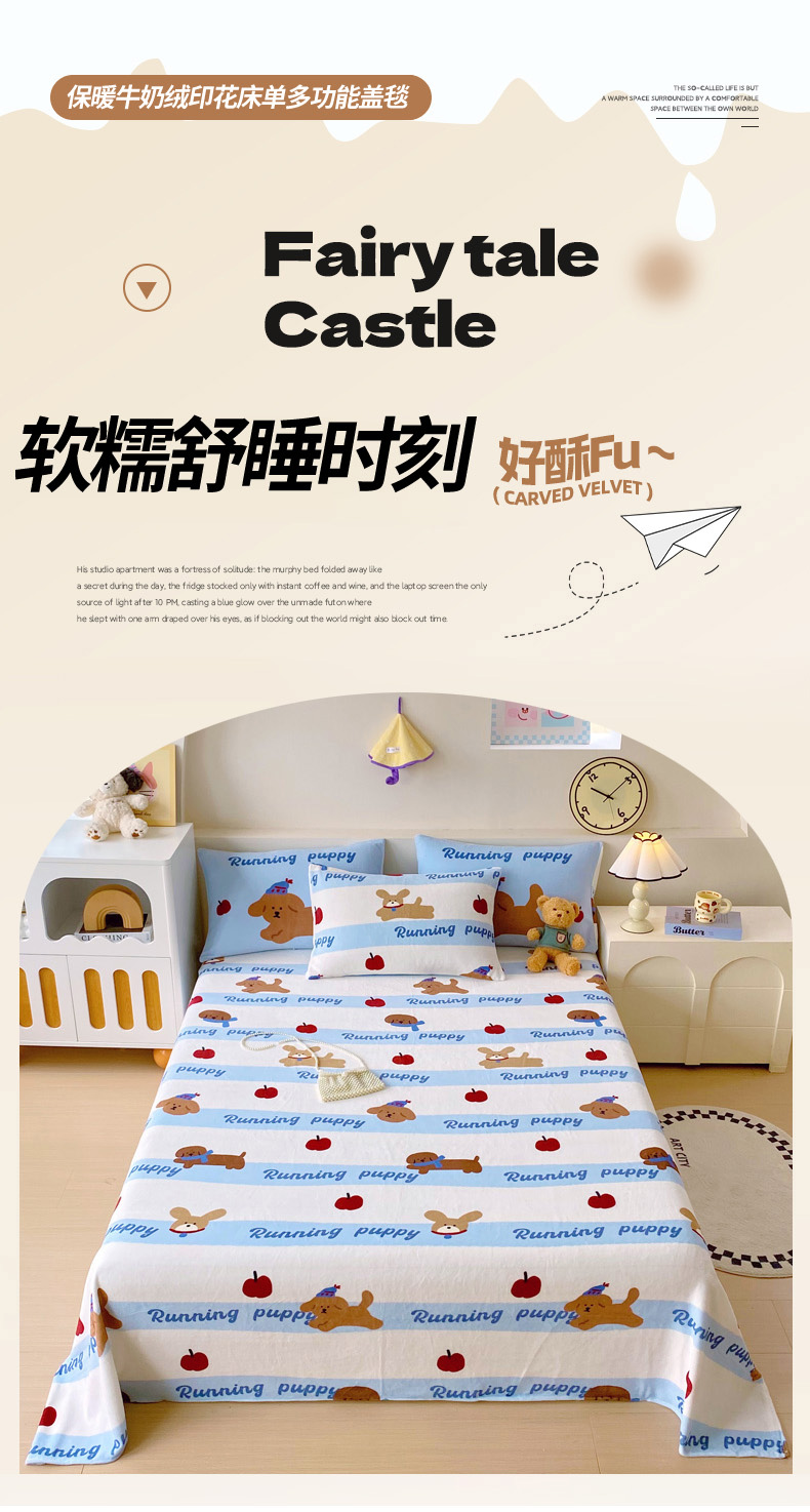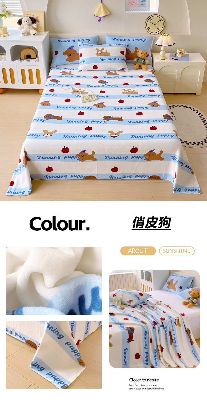当前位置: 91家纺网 > 商品网购 > 床上用品 > 床单 > 葡萄家 2025年新款牛奶绒印花单床单萌系卡通床单款 俏皮狗