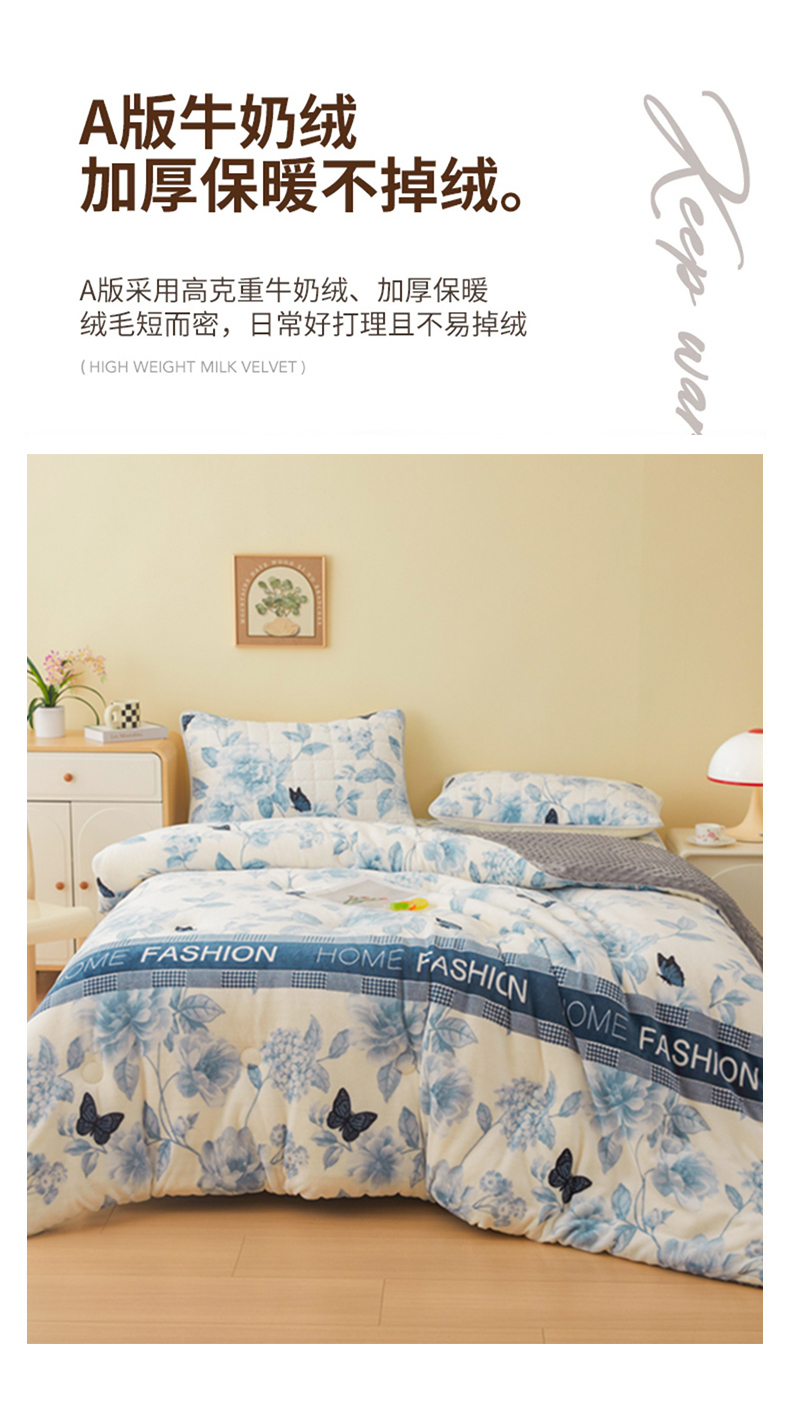 (总)柏薇 2025新款A类牛奶绒豆豆绒加厚冬被被子被芯,灰色蝴蝶结,青花蝴蝶,粉色蝴蝶结,粉紫梅花,玫瑰恋人黄,七彩南瓜,向日葵,银杏叶