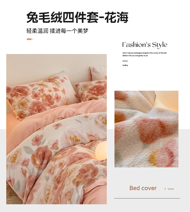 当前位置: 91家纺网 > 商品网购 > 床品套件 > 四件套 > 牛奶绒四件套 > 安哆啦家纺 2025新款高克重兔毛绒印花牛奶绒四件套 花意浓
