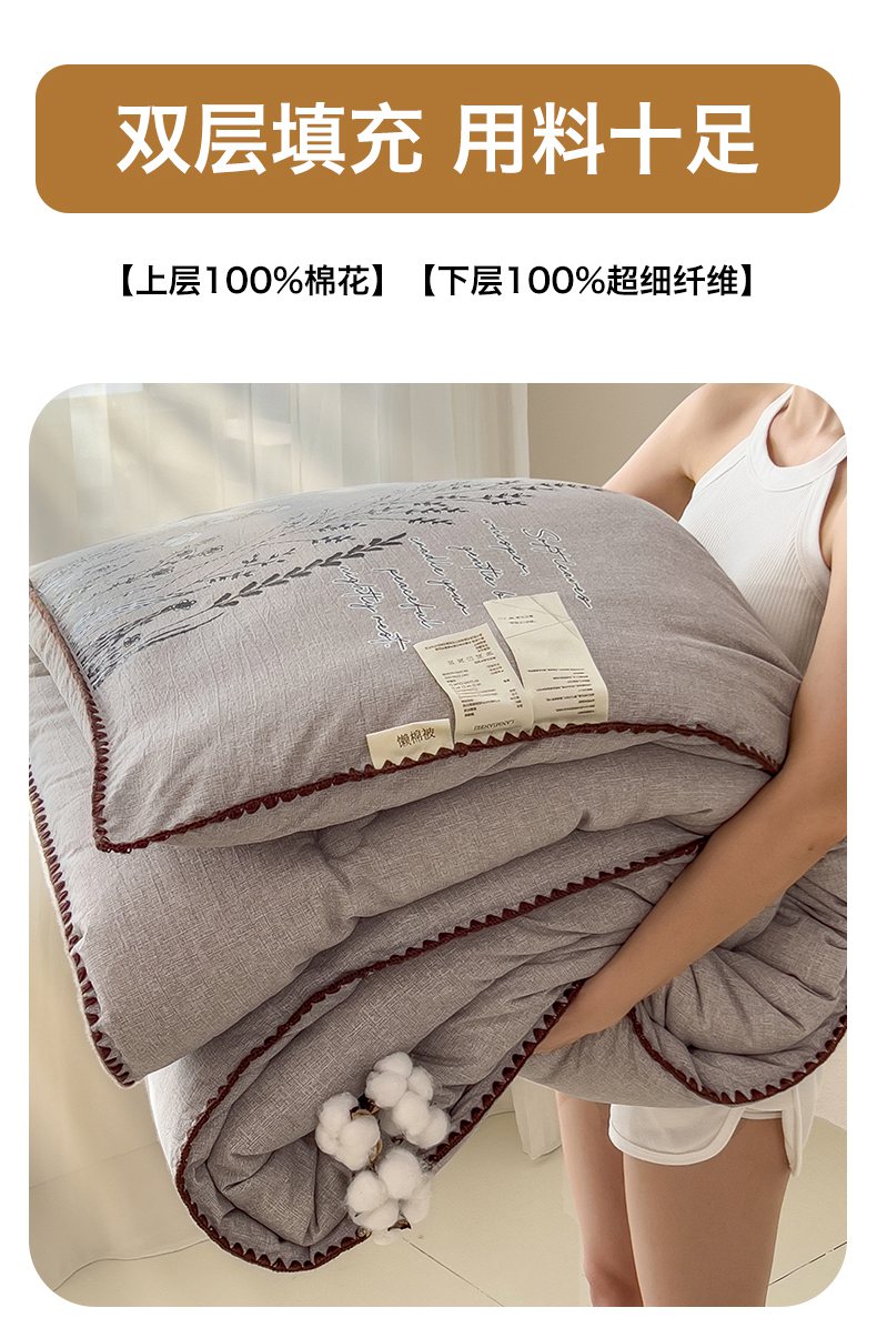 • 91家纺网 家纺一手货源 找家纺 梵克保罗 2025秋冬新品10A抗菌素麻棉花春秋被冬被被芯跨境外贸 素麻-墨染咖
