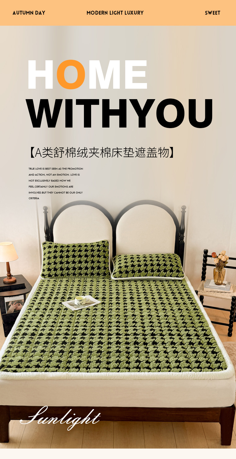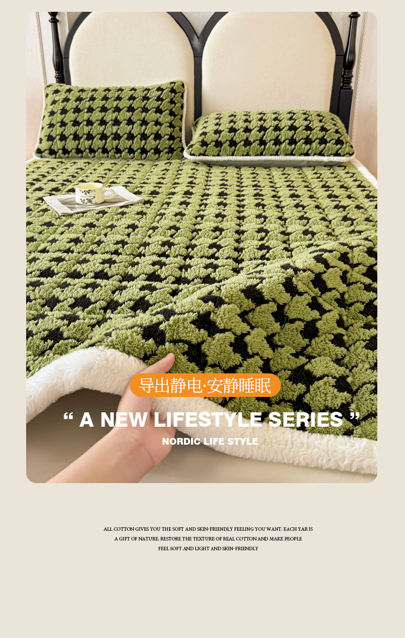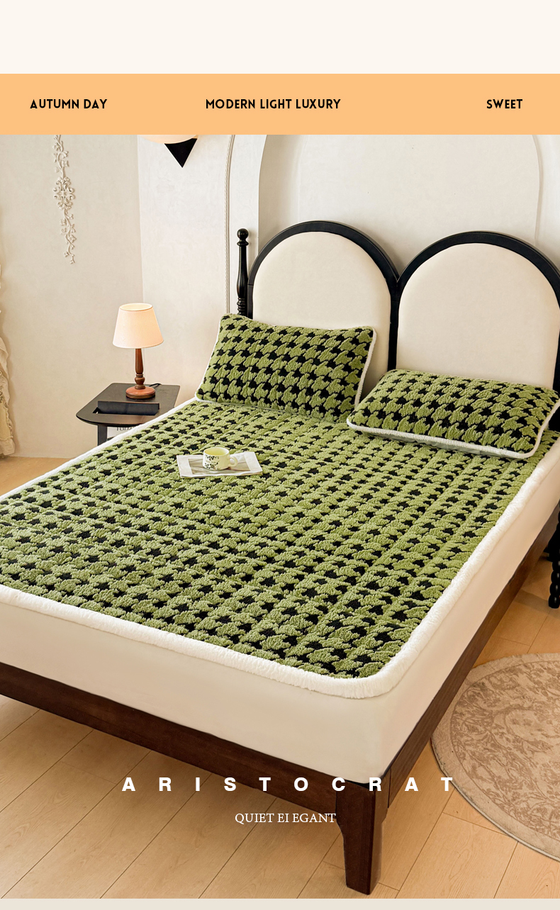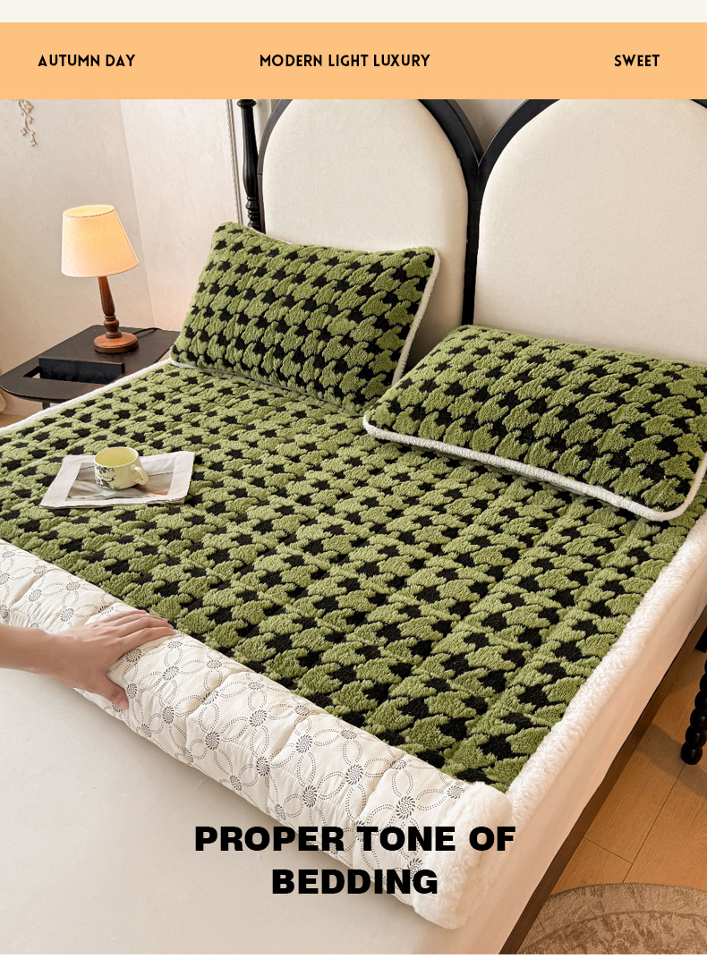当前位置: 91家纺网 > 商品网购 > 床垫/床褥 > LIFE.丽芙 2025秋冬新款色纱提花舒棉绒加厚夹棉床垫床护垫单件简约床褥床垫子三件套 千鸟格-草绿