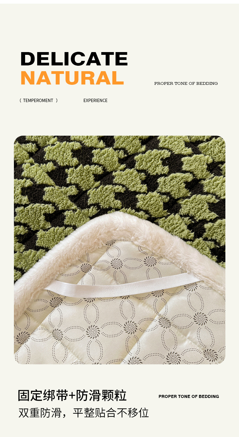• 91家纺网 家纺一手货源 找家纺 LIFE.丽芙 2025秋冬新款色纱提花舒棉绒加厚夹棉床垫床护垫单件简约床褥床垫子三件套 千鸟格-草绿
