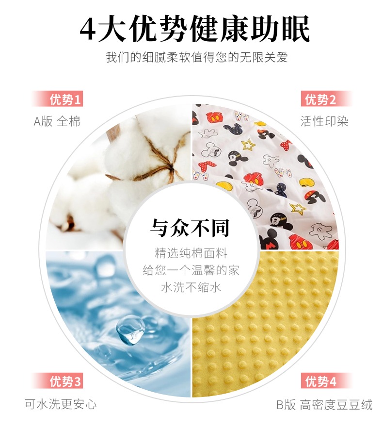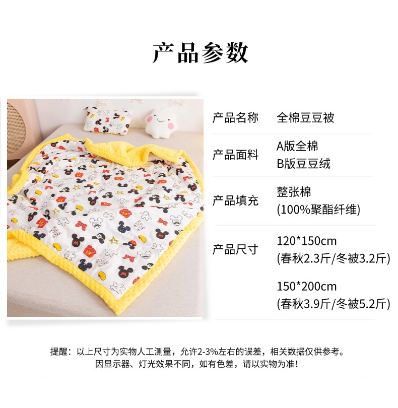 商品名称:十九色 2025秋冬新款全棉豆豆被春秋被被子被芯 米奇