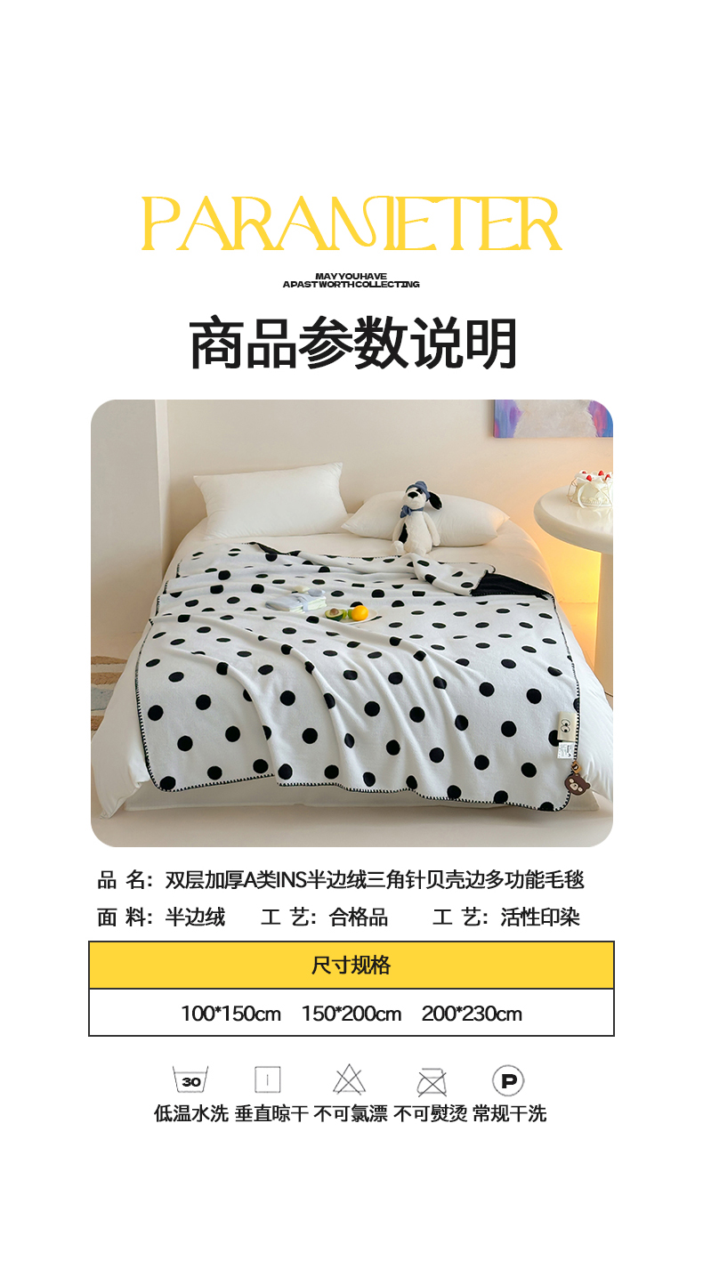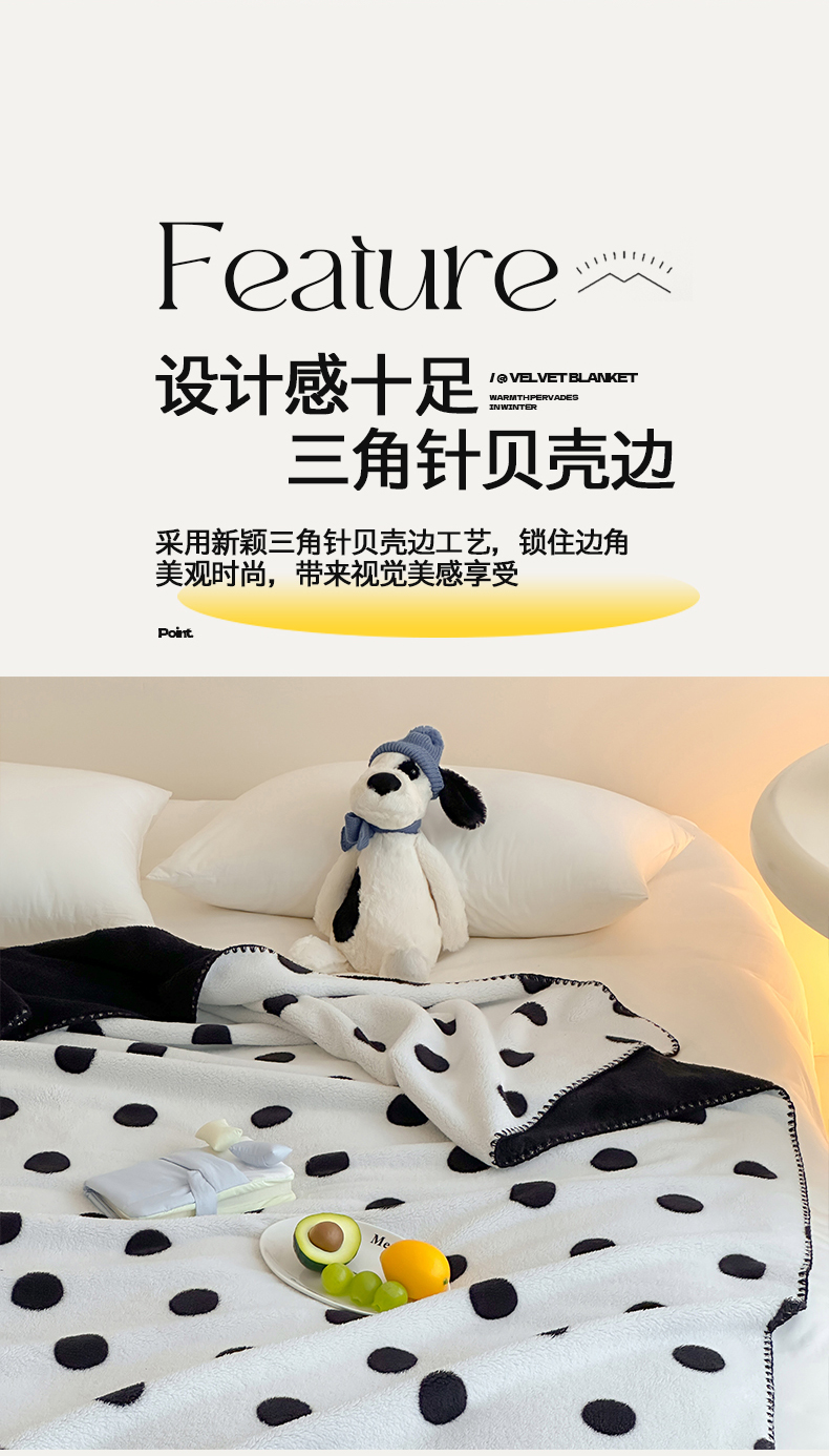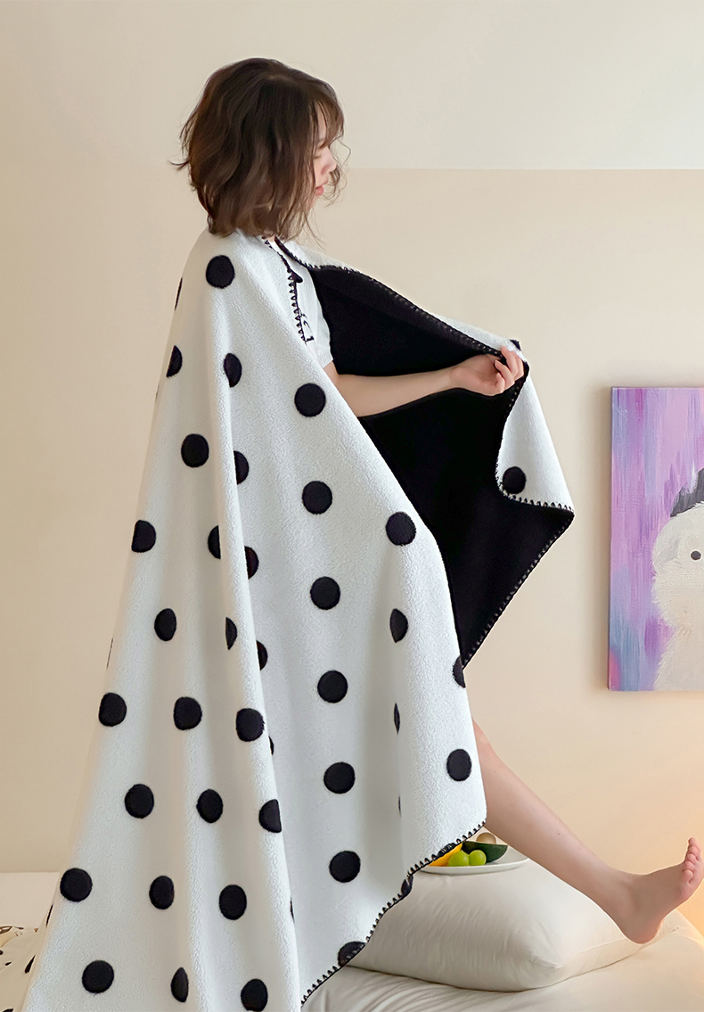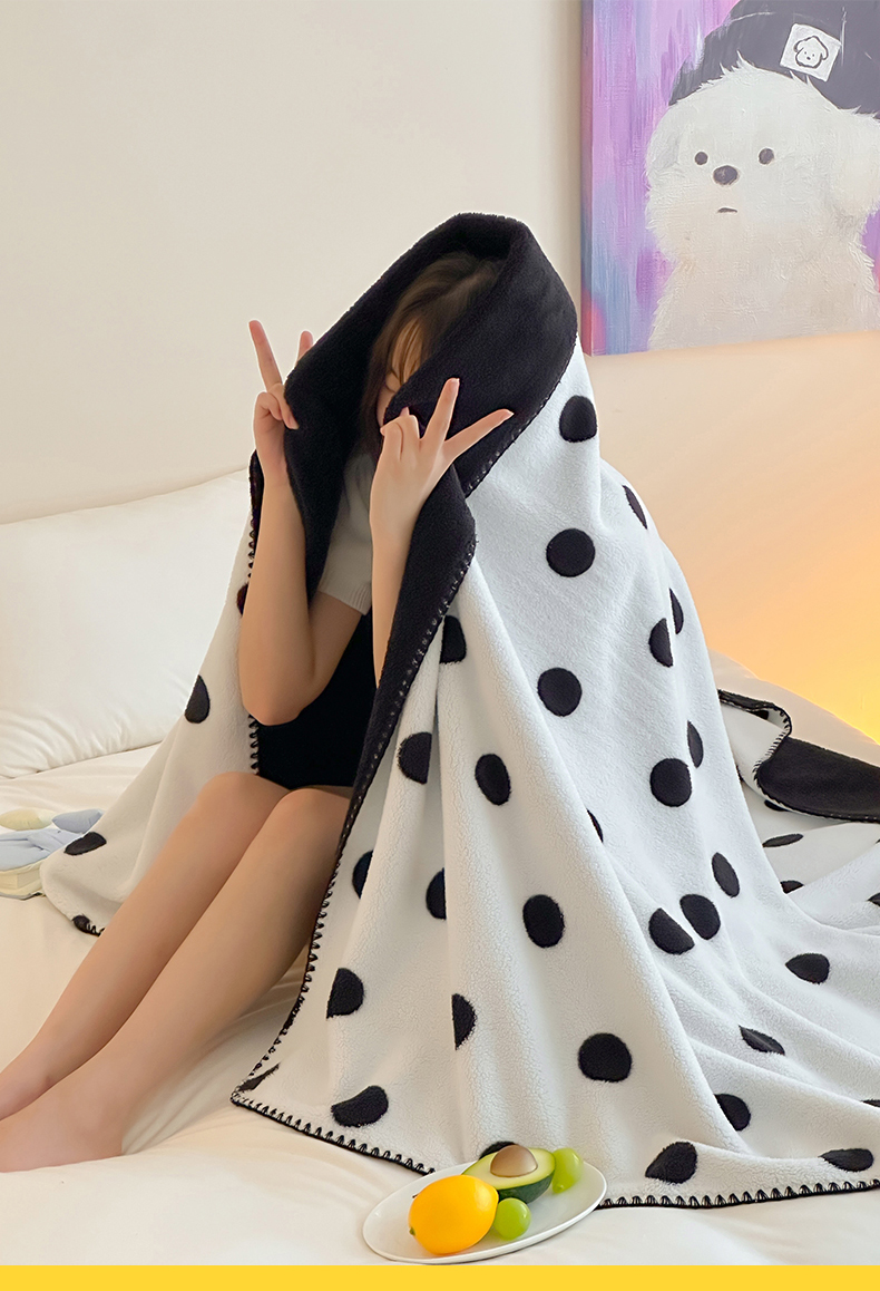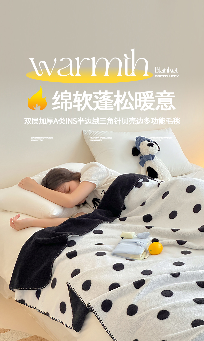 当前位置: 91家纺网 > 商品网购 > 毛毯休闲毯绒毯 > 毛毯 > 桃子家居 2025新款A类ins加厚半边绒米粒绒牛奶绒三角针贝壳边多功能毛毯毯子 绒毛毯-三角针黑波点