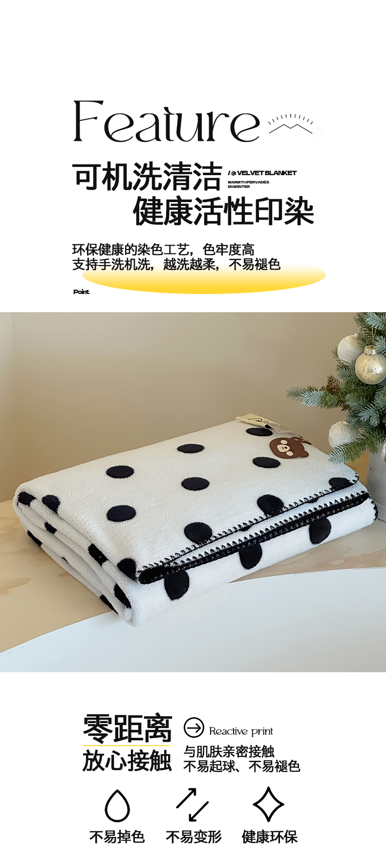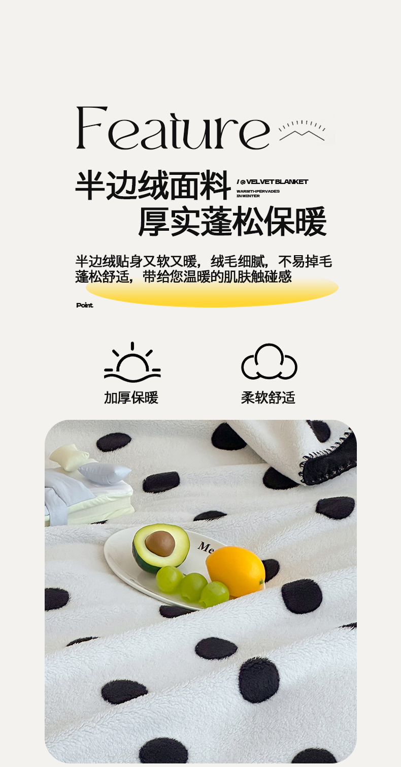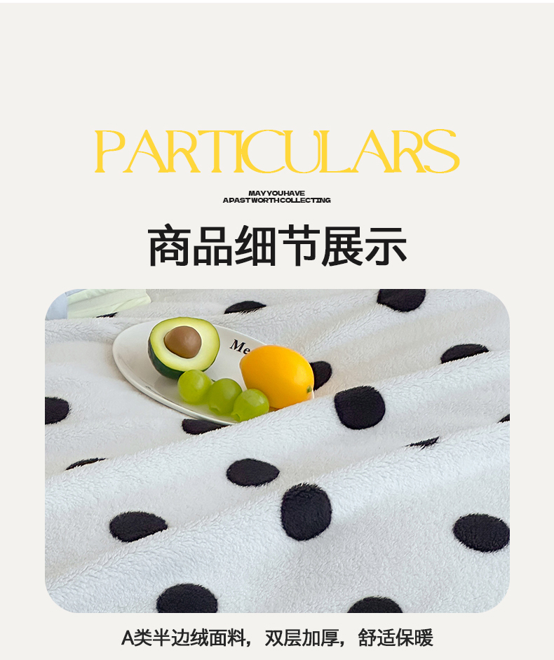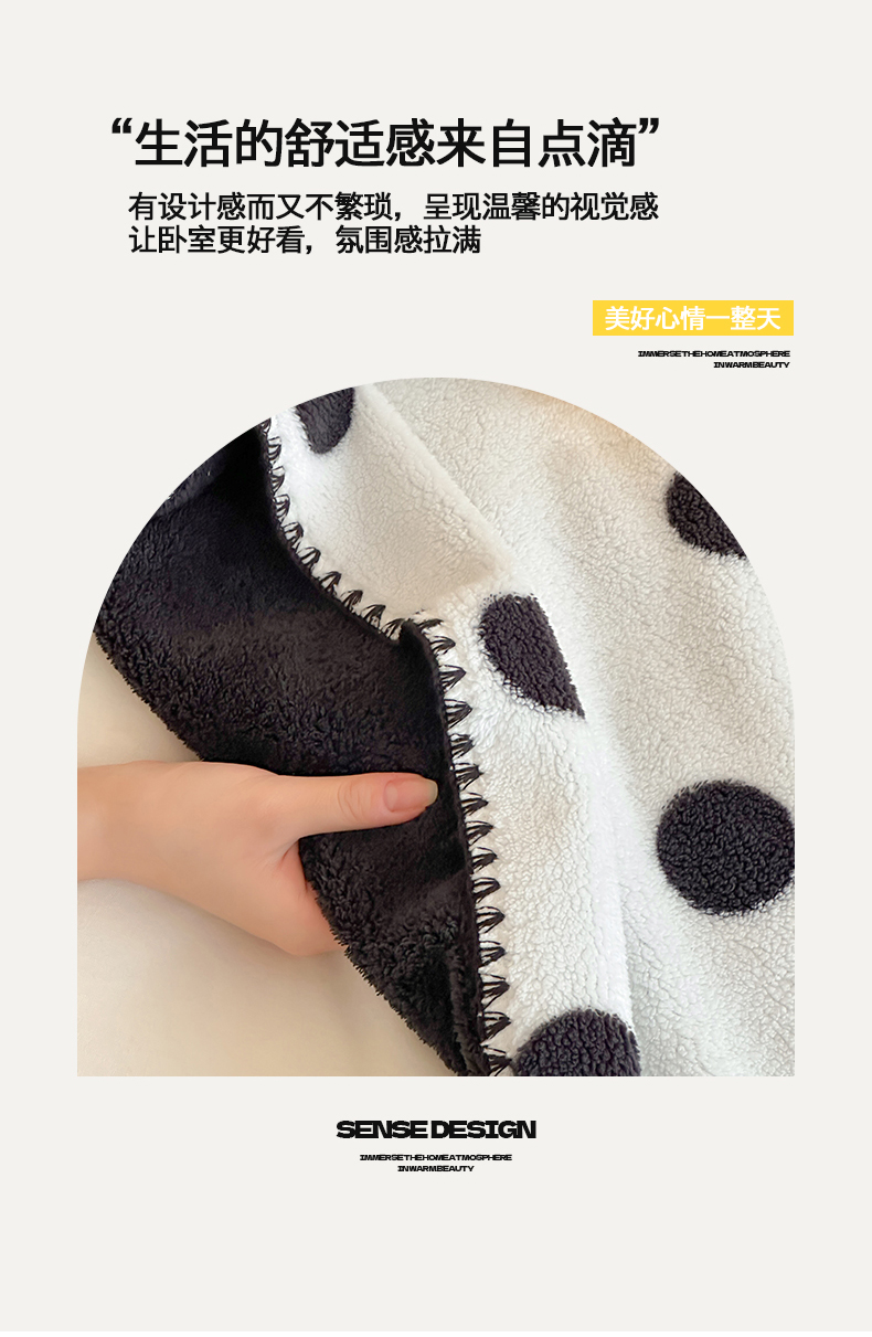 当前位置: 91家纺网 > 商品网购 > 毛毯休闲毯绒毯 > 毛毯 > 桃子家居 2025新款A类ins加厚半边绒米粒绒牛奶绒三角针贝壳边多功能毛毯毯子 绒毛毯-三角针黑波点