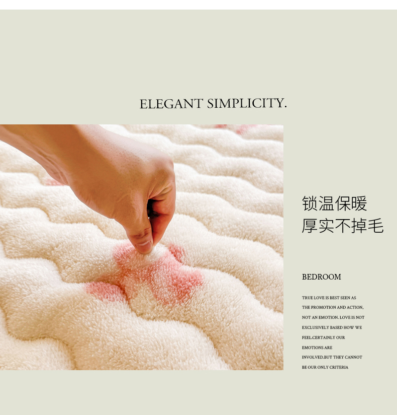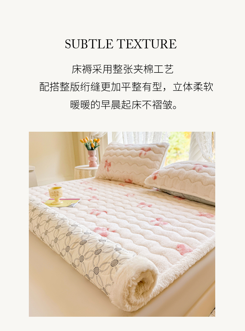 当前位置: 91家纺网 > 商品网购 > 床垫/床褥 > LIFE.丽芙 2025秋冬新款北极绒加厚夹棉床垫床护垫单件牛奶绒床褥床垫子三件套 蝶梦-粉