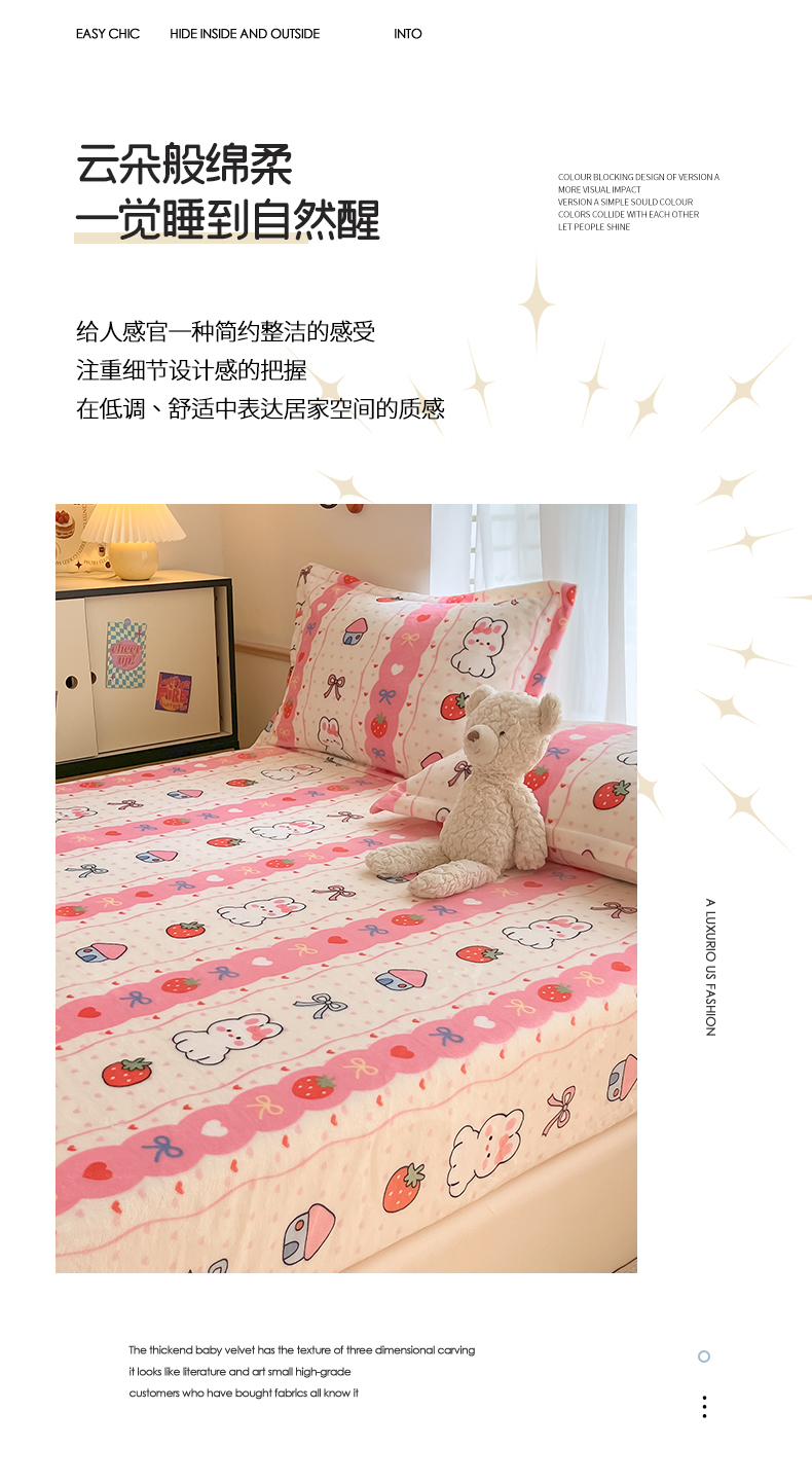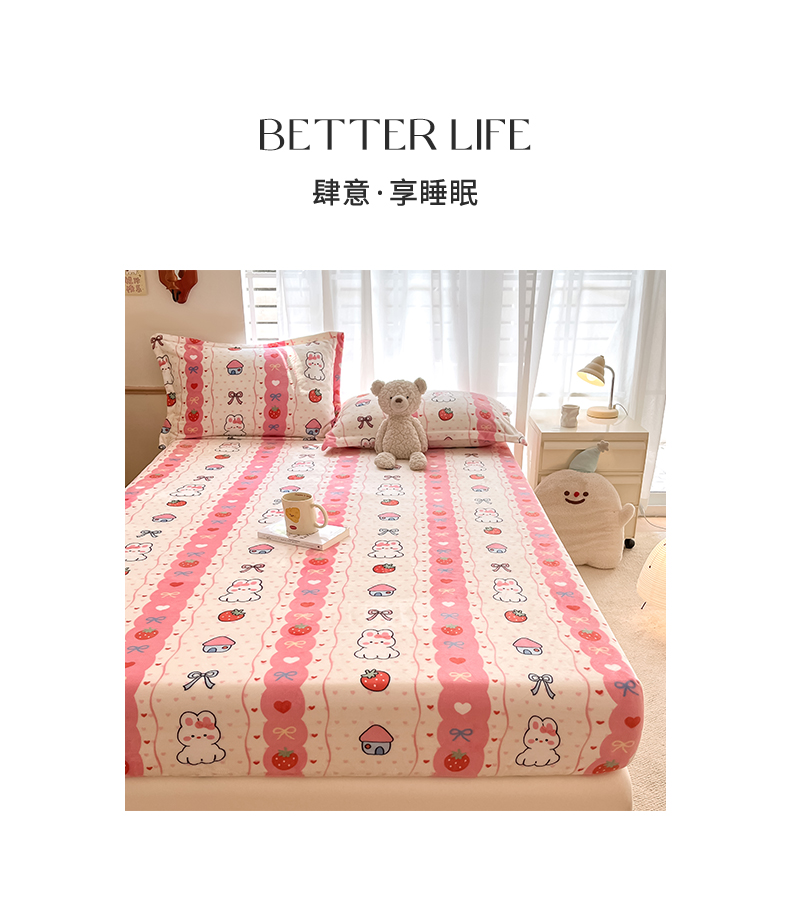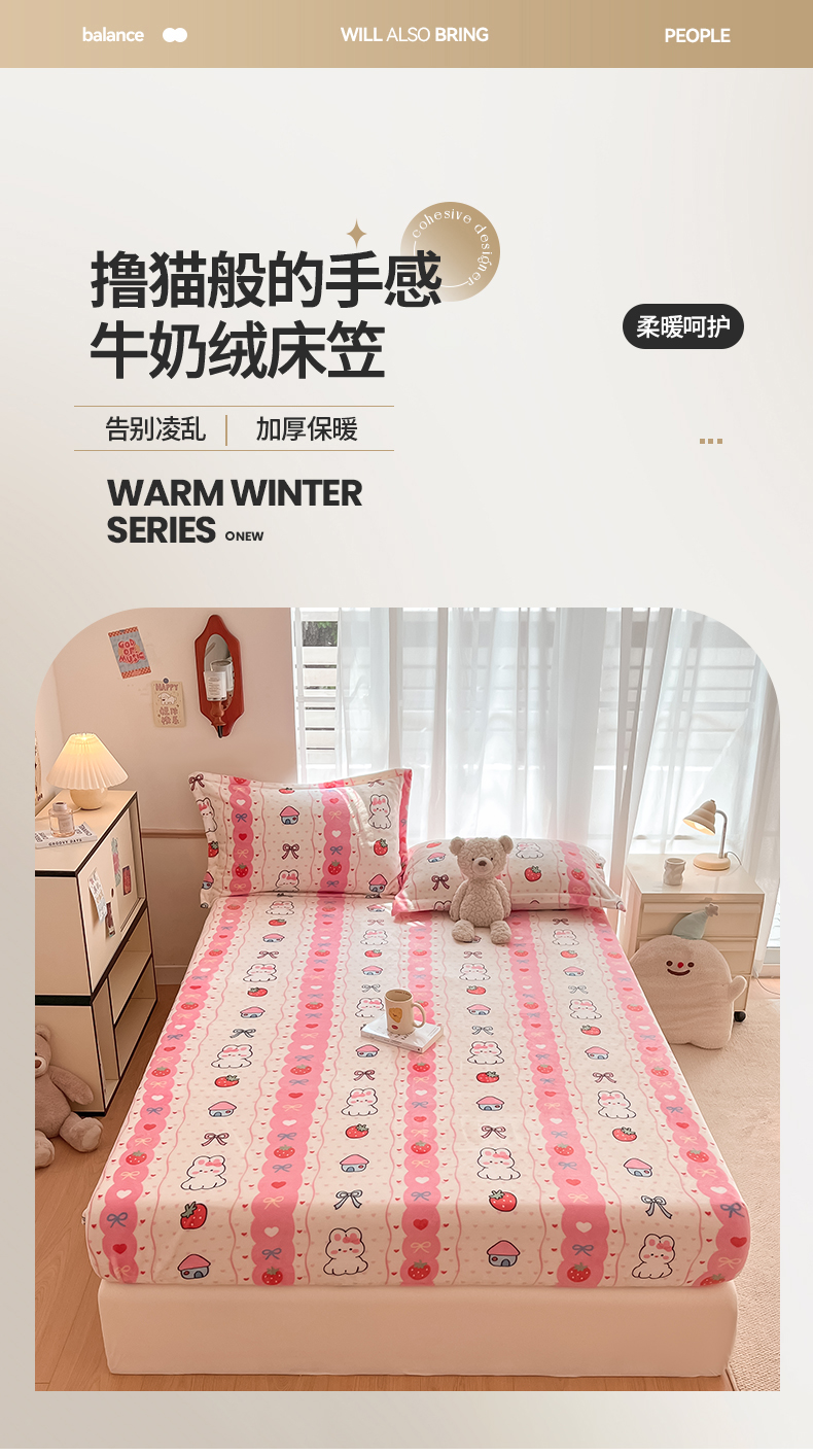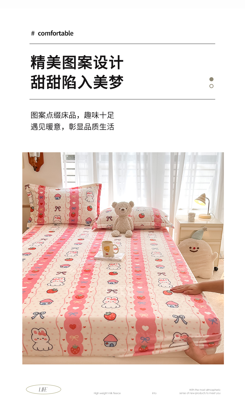 寻米 2025新款高克重加厚保暖牛奶绒床笠-大床图 草莓兔兔