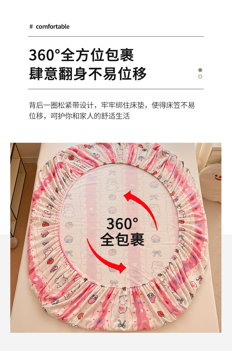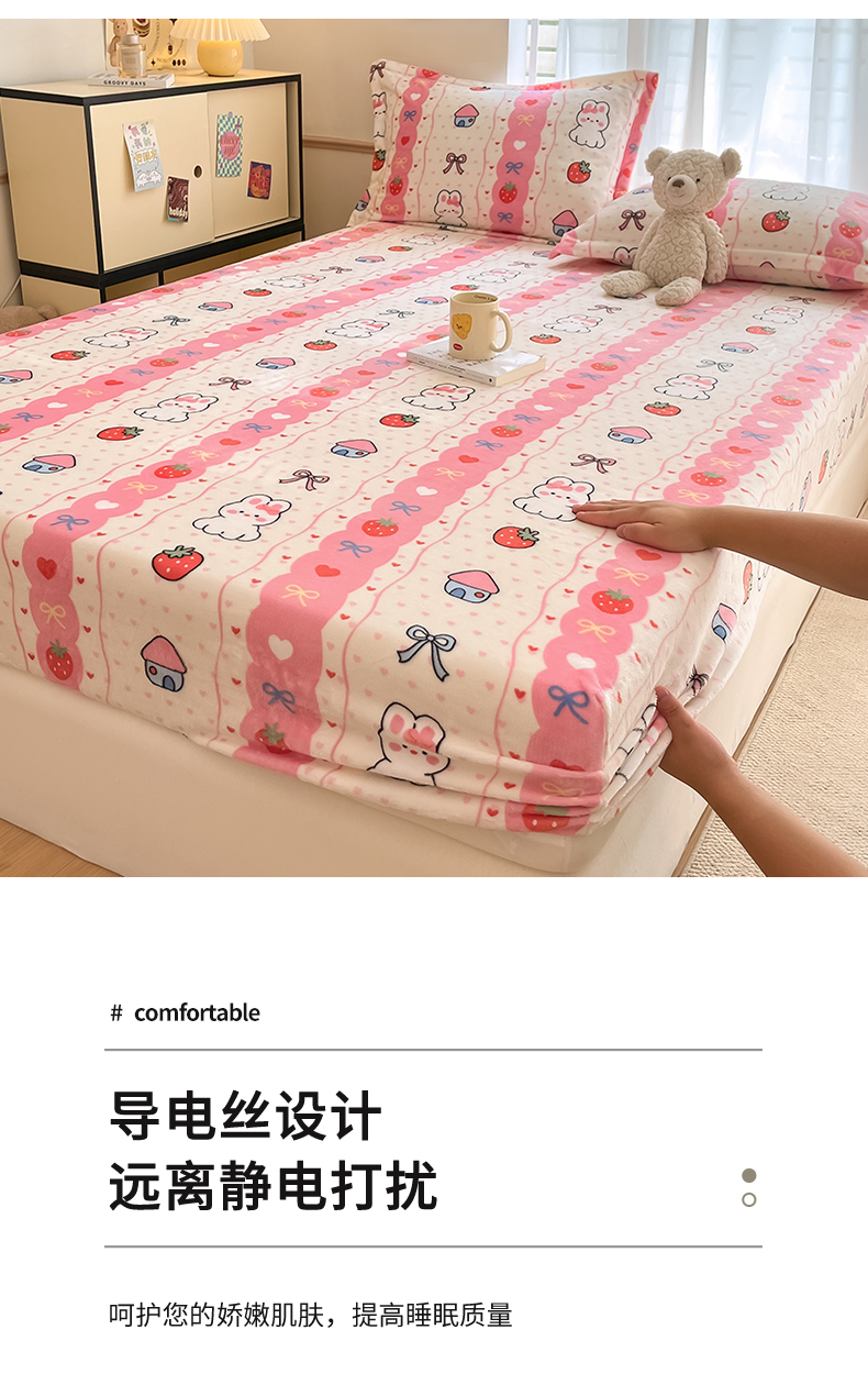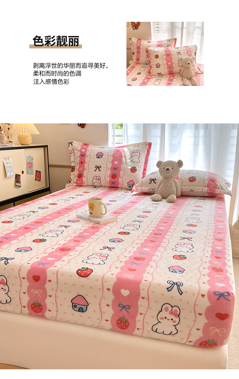 • 91家纺网 家纺一手货源 找家纺 寻米 2025新款高克重加厚保暖牛奶绒床笠-大床图 草莓兔兔
