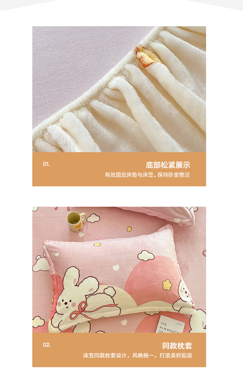 • 91家纺网 家纺一手货源 找家纺 寻米 2025新款高克重加厚保暖牛奶绒床笠-大床图 云朵小兔