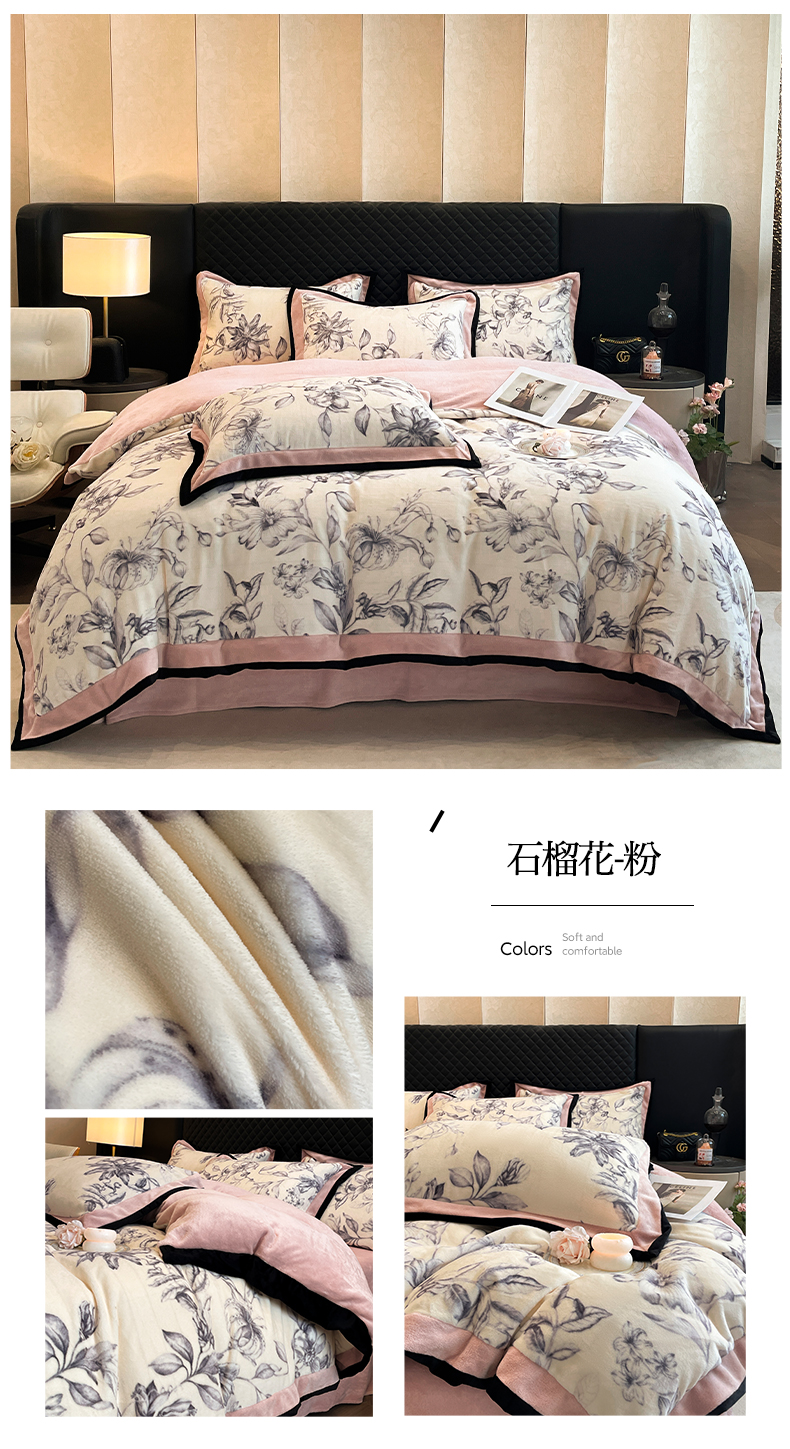 (总)首尔家纺 2025新款牛奶绒宽边拼角数码印花四件套系列,大粉豹,大咖豹,巴洛克-粉,巴洛克-灰,豹纹-粉,豹纹-咖,繁花似锦-粉,繁花似锦-灰,国色天香,花团锦簇-粉,孔雀舞-咖,玫瑰之吻-灰咖,玫瑰之吻-米,石榴花-粉,石榴花-咖,石榴花-抹茶,银杏叶-咖