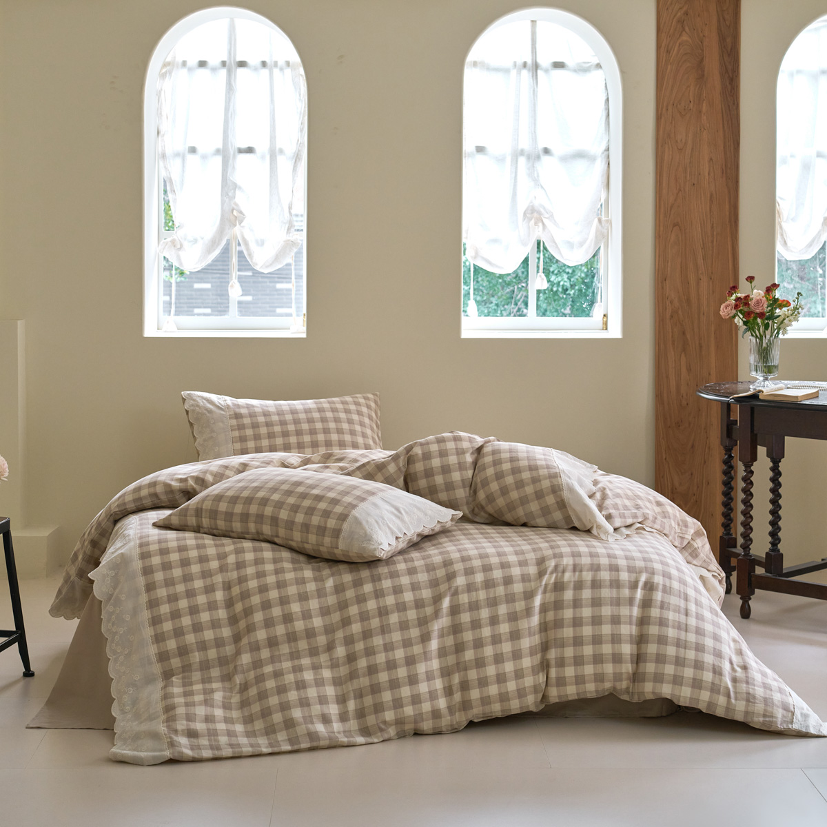 (总)洋铭区(原狠狠爱) 2026新款色织水洗棉一字边四件套系列,朵拉粉格,朵拉咖格,朵拉绿格,翡翠绿格,风雅蓝格,枫叶红格,红茶格,山宇灰格,杏仁米格,烟幕黑格,烟幕蓝格,烟幕棕格,组合