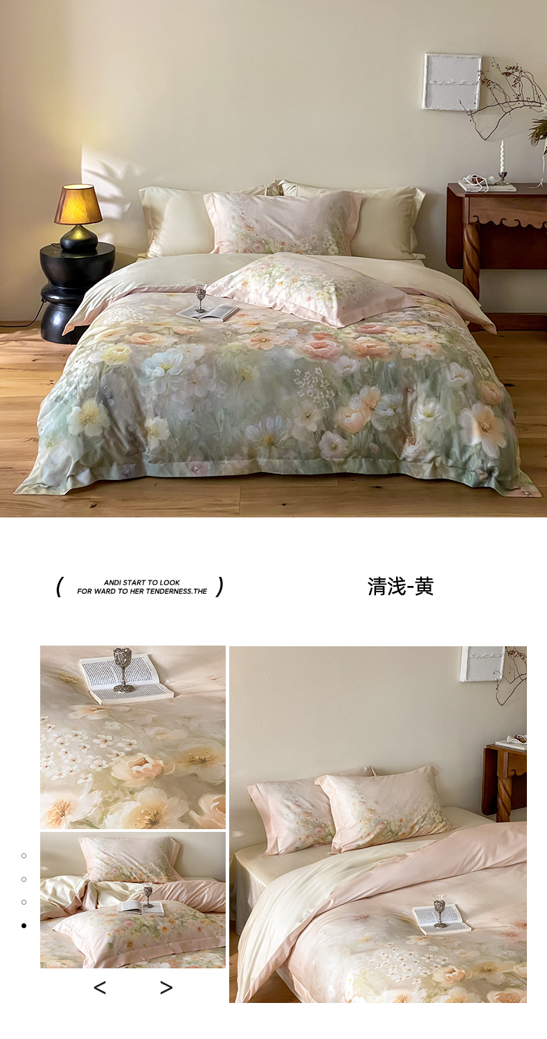 商品名称:禾时 2025新款天丝棉磨毛数码印花四件套 清浅-黄