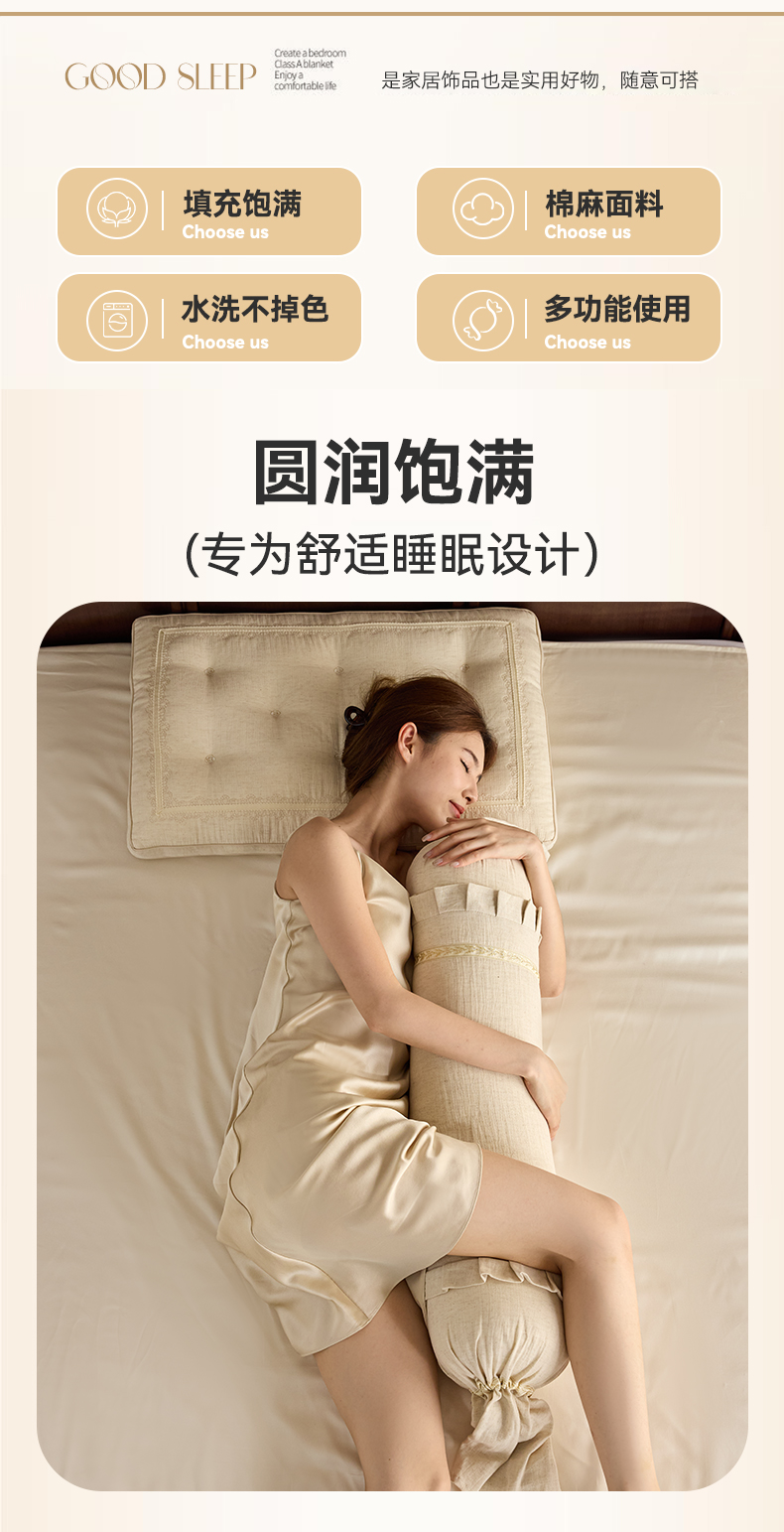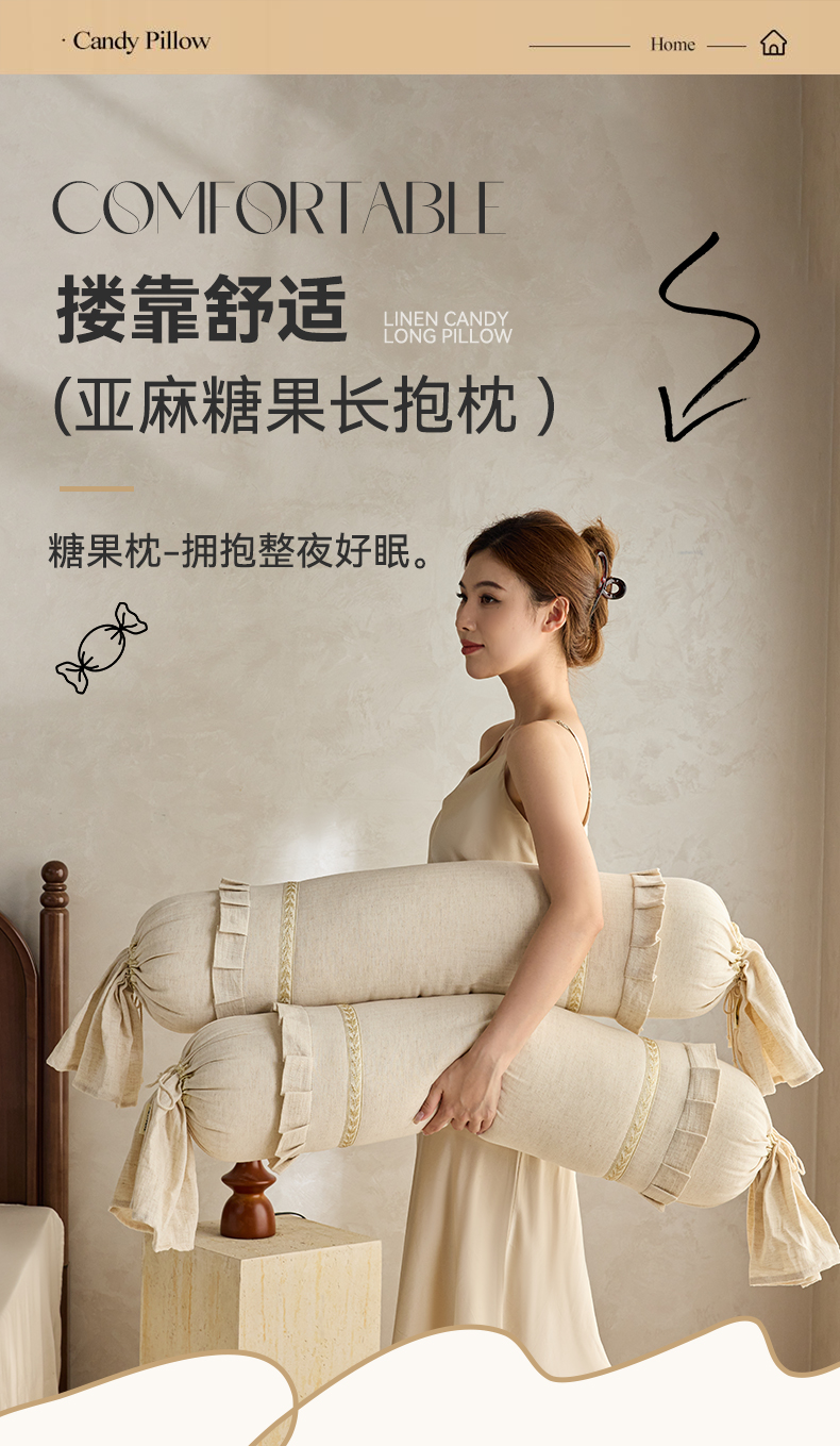 当前位置: 91家纺网 > 商品网购 > 枕头/枕芯/保健枕/颈椎枕 > 枕头枕芯 > 昕科 2025新款亚麻糖果长抱枕-多功能睡觉长抱枕头沙发靠枕芯亚麻可拆洗长抱枕糖果枕 糖果枕-一只