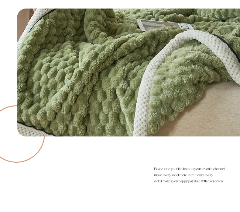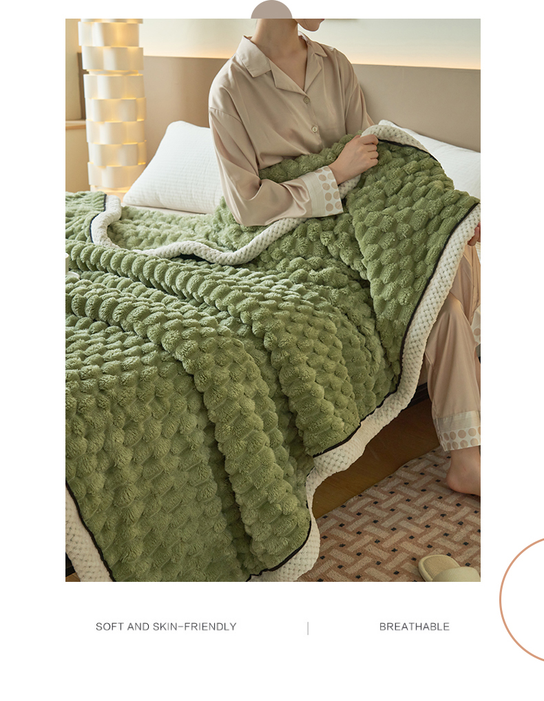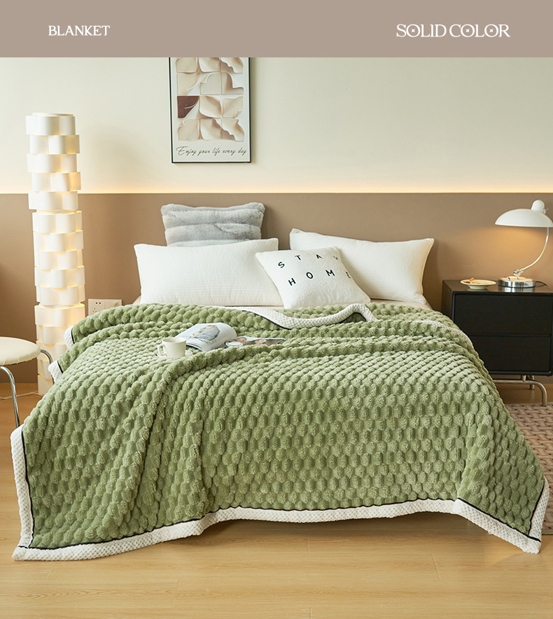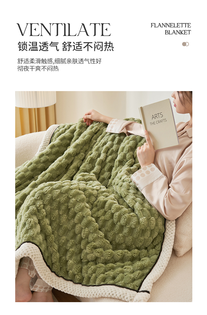 (总)莱家富 2026新款加厚双层复合毯舒棉绒剪花毛毯,兰色,绿色,米色,深灰色,樱花粉,紫色