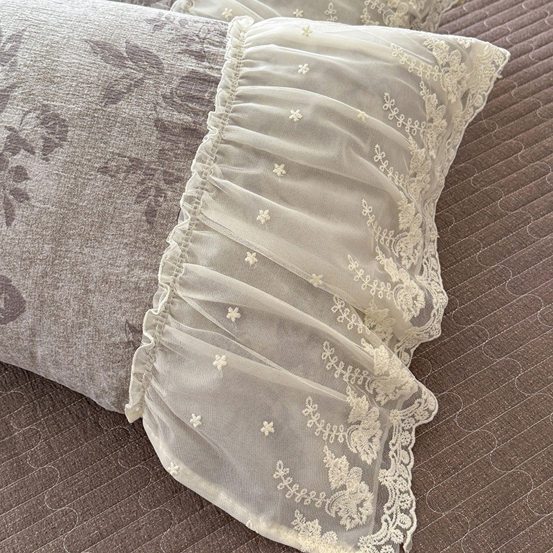 商品名称:漫布云2025秋冬新款法式复古双层花边大蕾丝水洗棉亚麻床盖款四件套全棉纯棉印花小碎花四件套 巴洛克灰